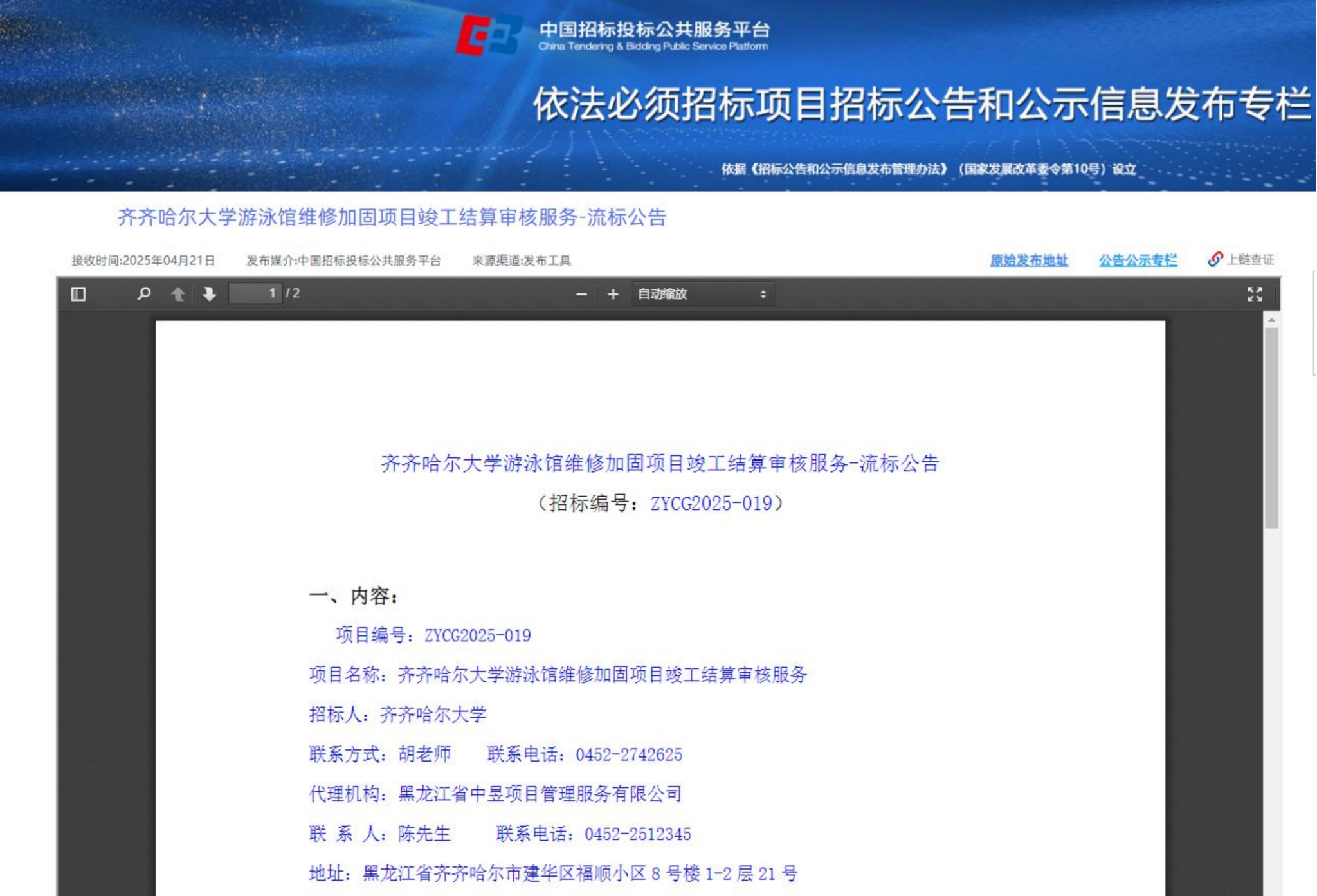 下一條:齊齊哈爾大學(xué)學(xué)歷繼續(xù)教育綜合服務(wù)平臺運維服務(wù)(轉(zhuǎn)自中國招標(biāo)投標(biāo)公共服務(wù)平臺)