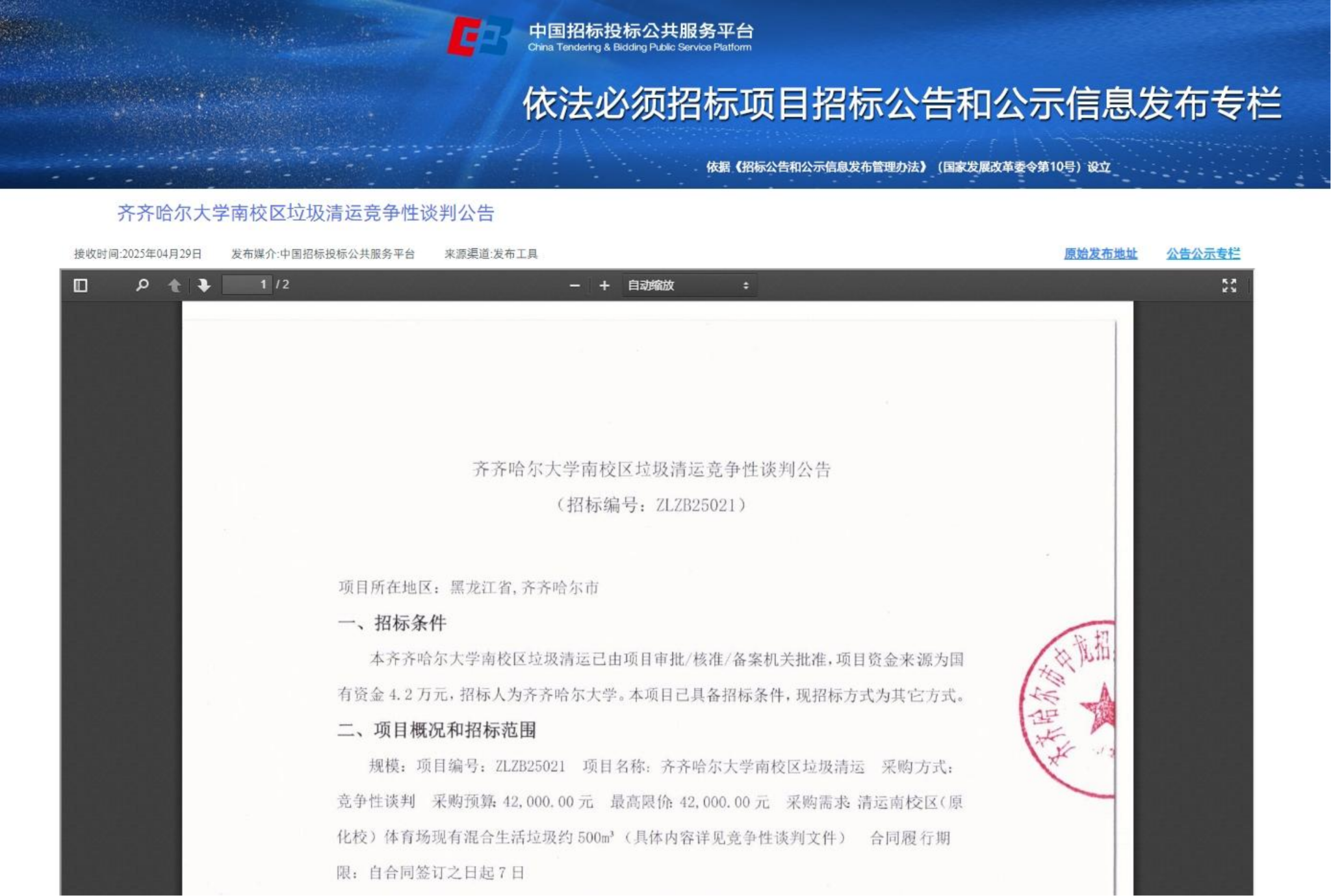 下一條:齊齊哈爾大學(xué)2025年碩士學(xué)位論文評閱服務(wù)采購實(shí)行單一來源采購方式的公示(轉(zhuǎn)自黑龍江省政府采購網(wǎng))