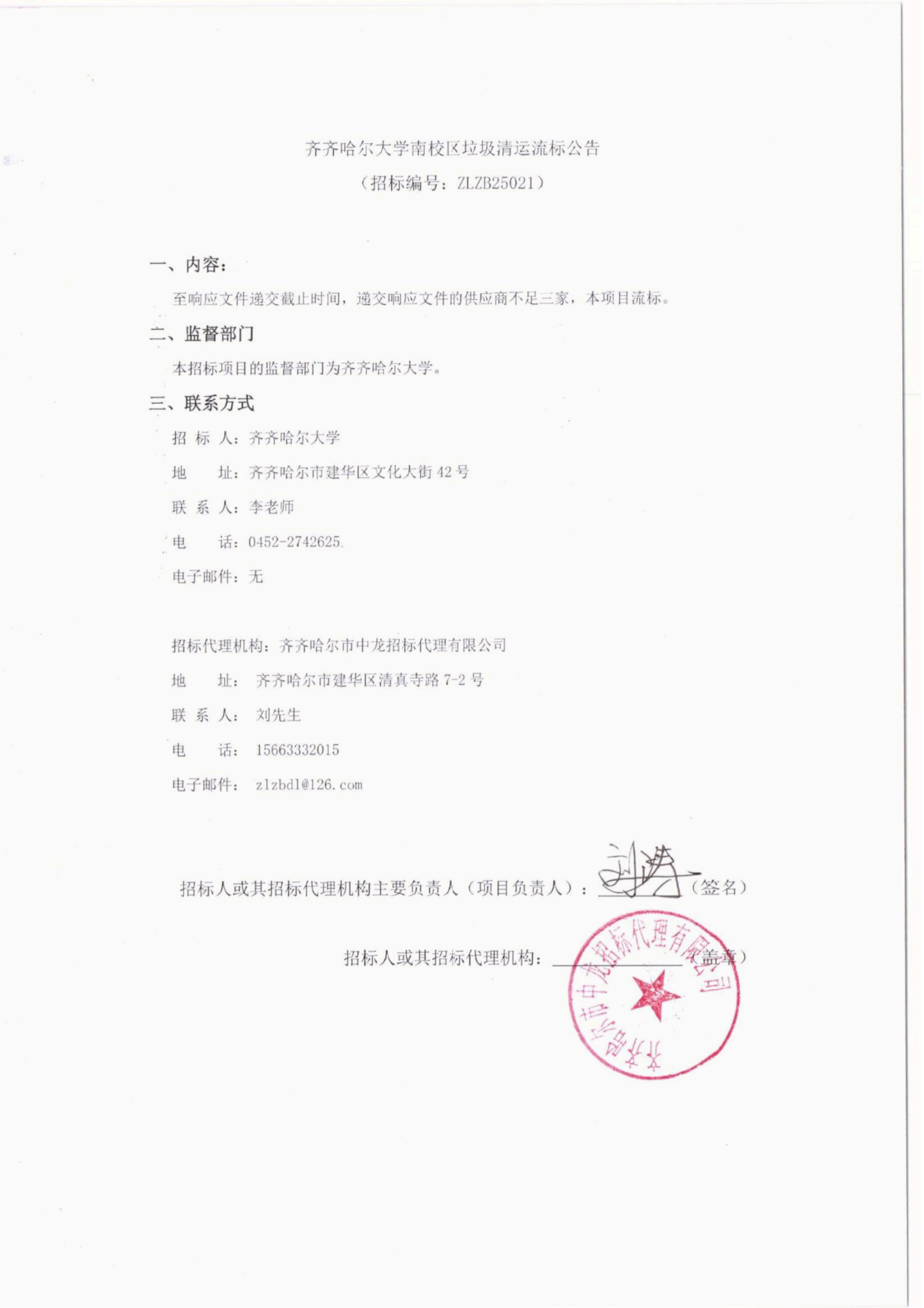 下一條:齊齊哈爾大學南校區(qū)垃圾清運(二次)競爭性談判公告(轉自中國招標投標公共服務平臺)