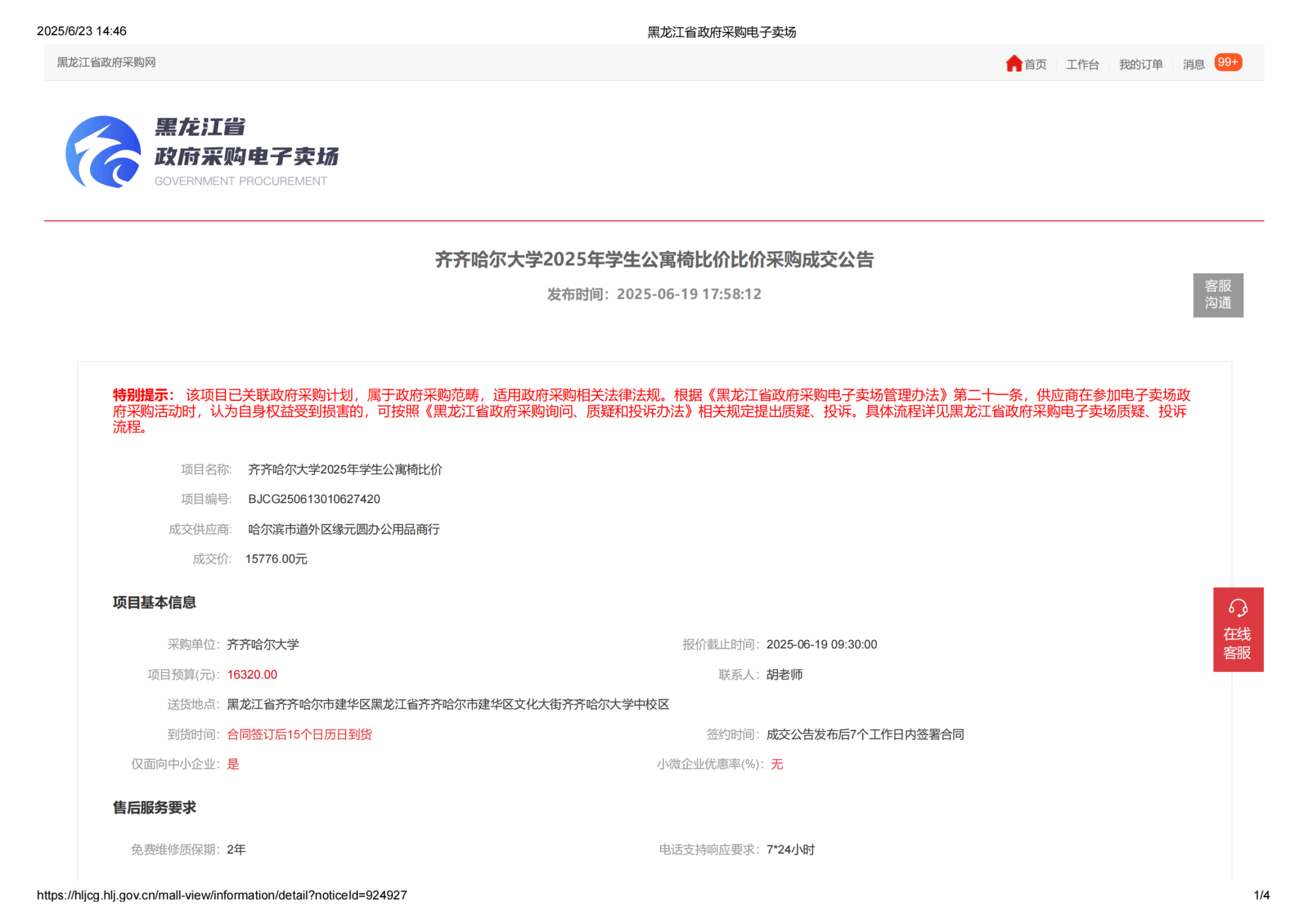 下一條:齊齊哈爾大學(xué)2025年學(xué)生公寓上下鋪公寓床(加長)比價比價采購成交公告(轉(zhuǎn)自黑龍江省政府采購網(wǎng))