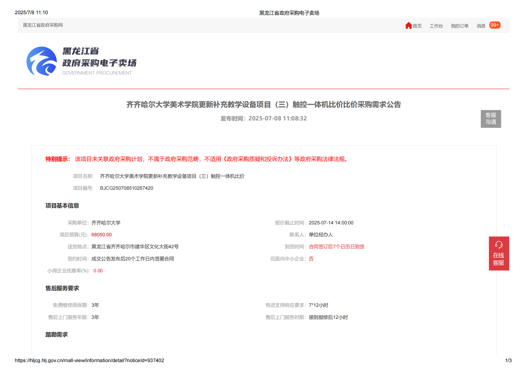 下一條:齊齊哈爾大學(xué)排污系統(tǒng)清掏服務(wù)采購項目(第2次)比價采購公告(轉(zhuǎn)自黑龍江省政府采購網(wǎng))