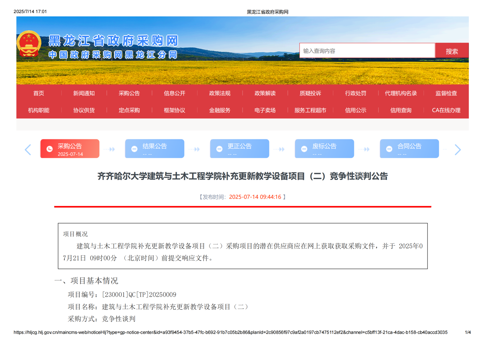下一條:齊齊哈爾大學(xué)建筑與土木工程學(xué)院補充更新教學(xué)設(shè)備項目(一)競爭性談判公告(轉(zhuǎn)自黑龍江省政府采購網(wǎng))