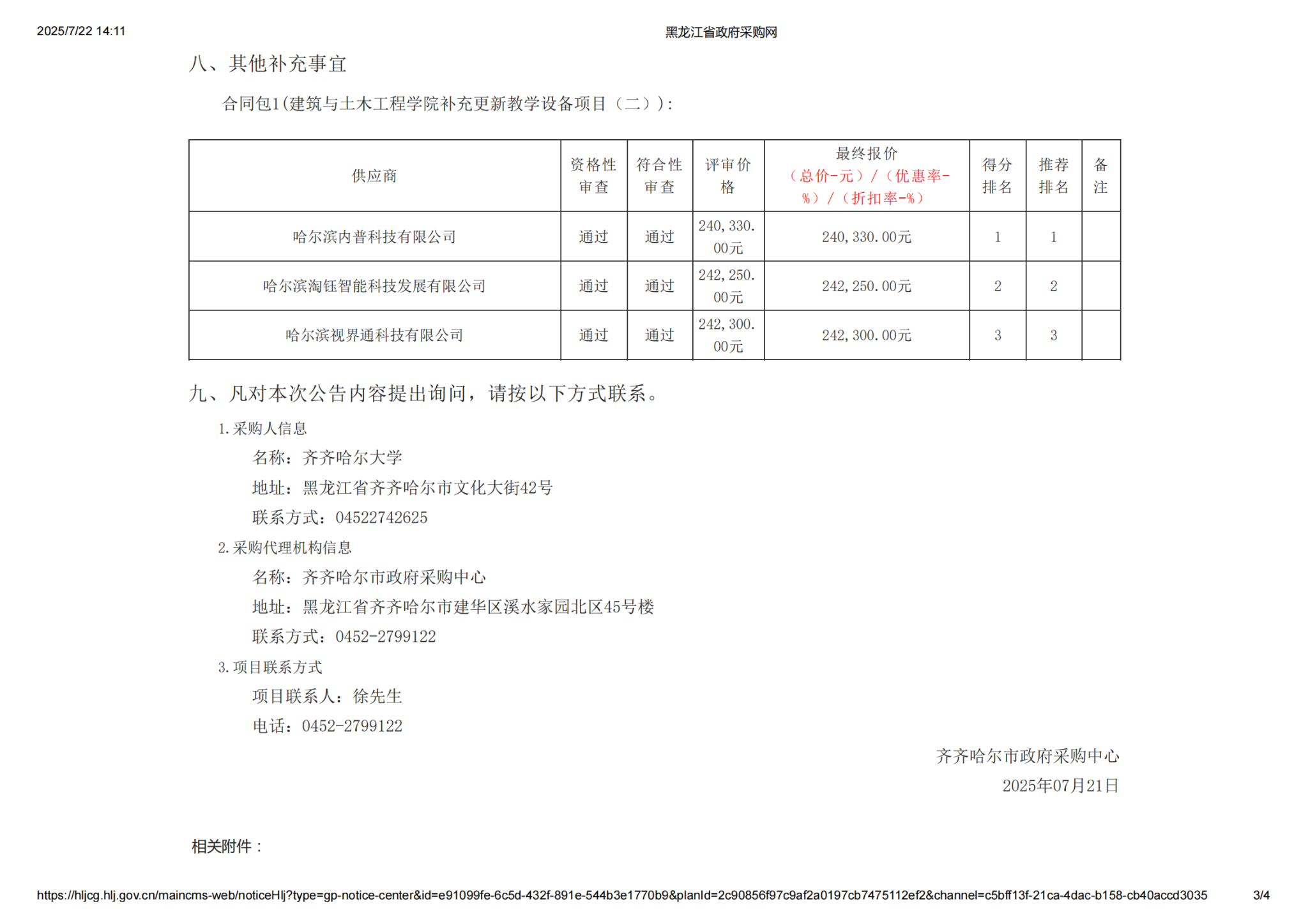 下一條:齊齊哈爾大學(xué)建筑與土木工程學(xué)院補(bǔ)充更新教學(xué)設(shè)備項(xiàng)目(一)中標(biāo)(成交)結(jié)果公告(轉(zhuǎn)自黑龍江省政府采購(gòu)網(wǎng))