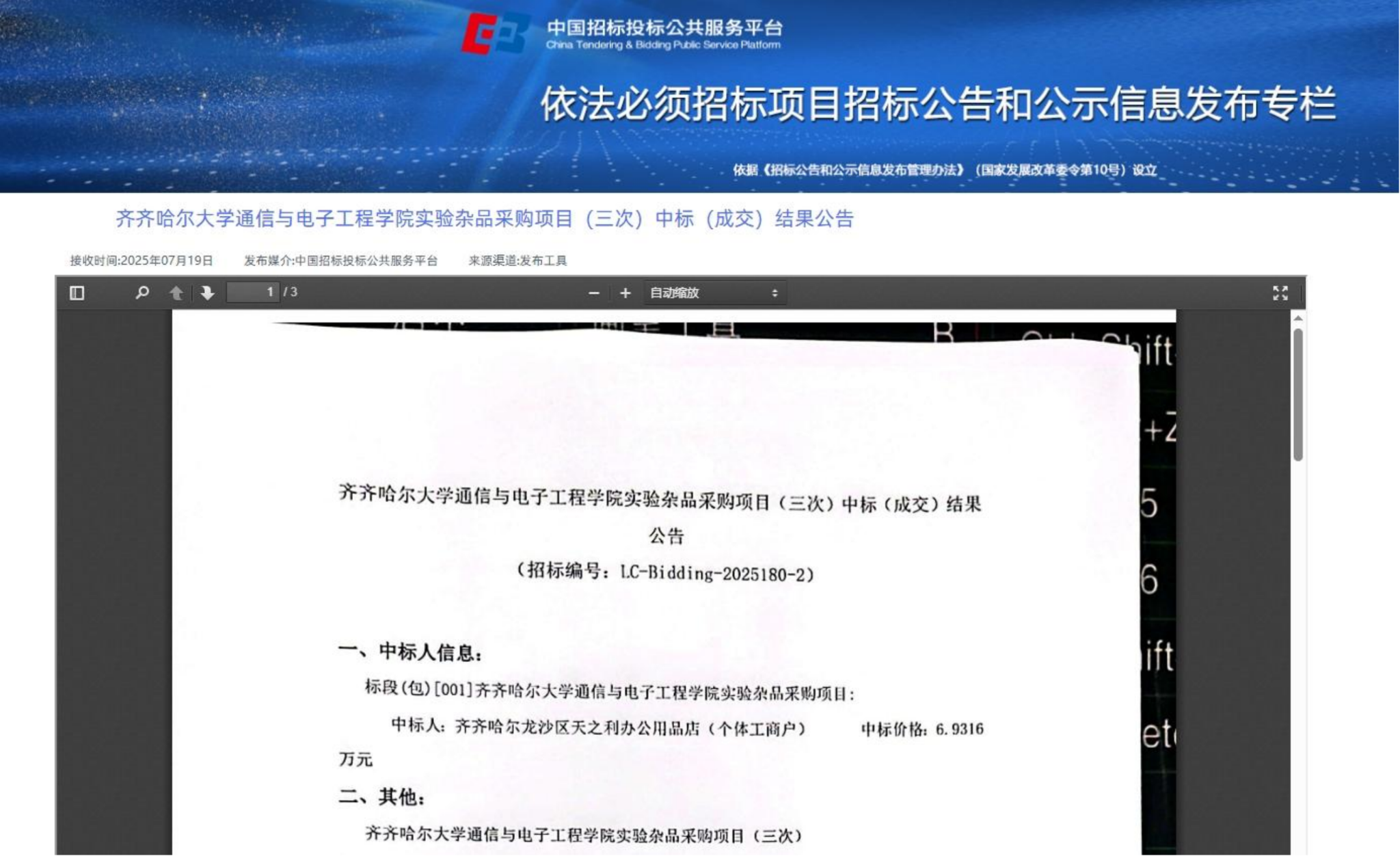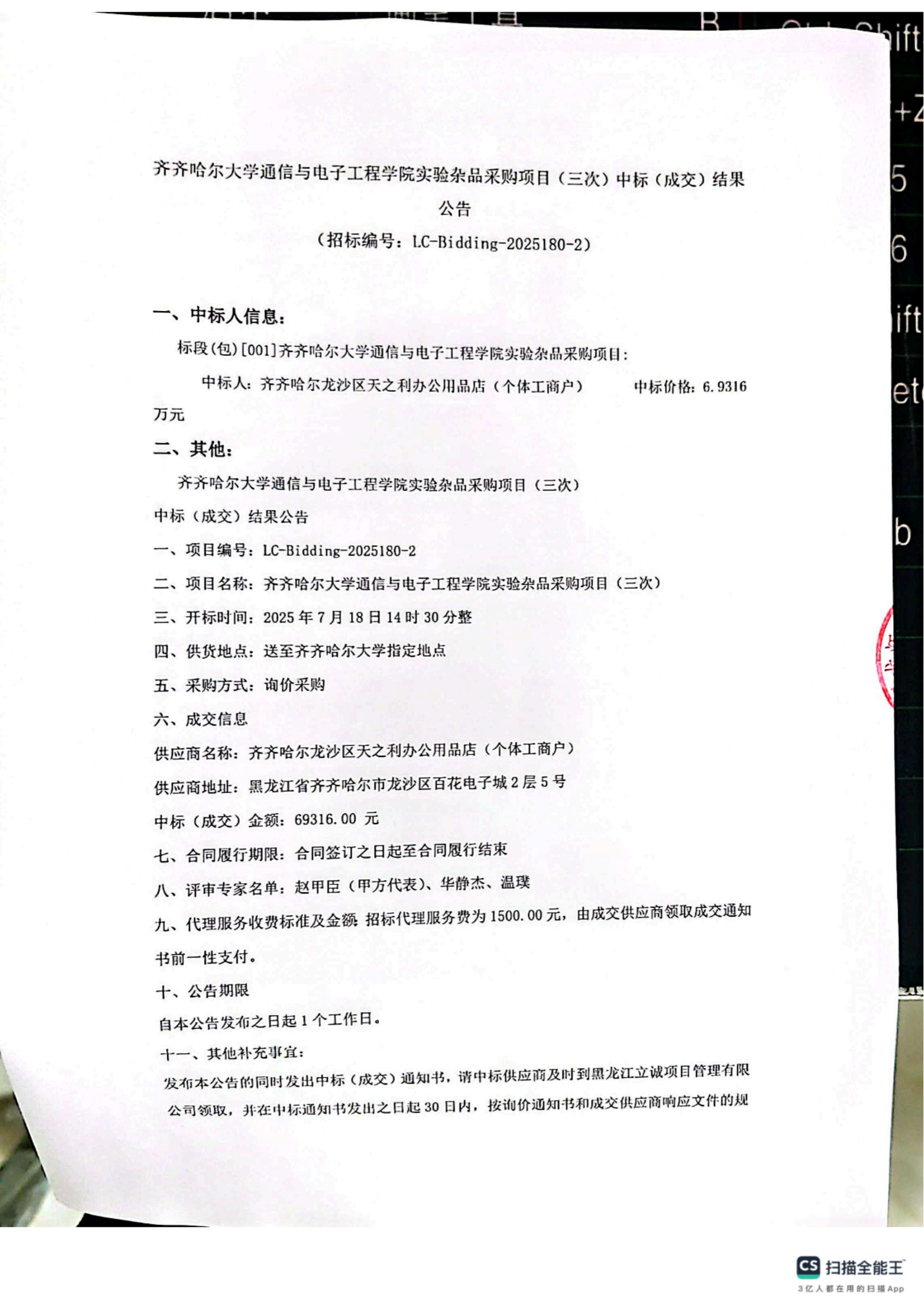 下一條:齊齊哈爾大學(xué)通信與電子工程學(xué)院補充更新教學(xué)設(shè)備項目結(jié)果公告(廢標(biāo))(轉(zhuǎn)自黑龍江省政府采購網(wǎng))