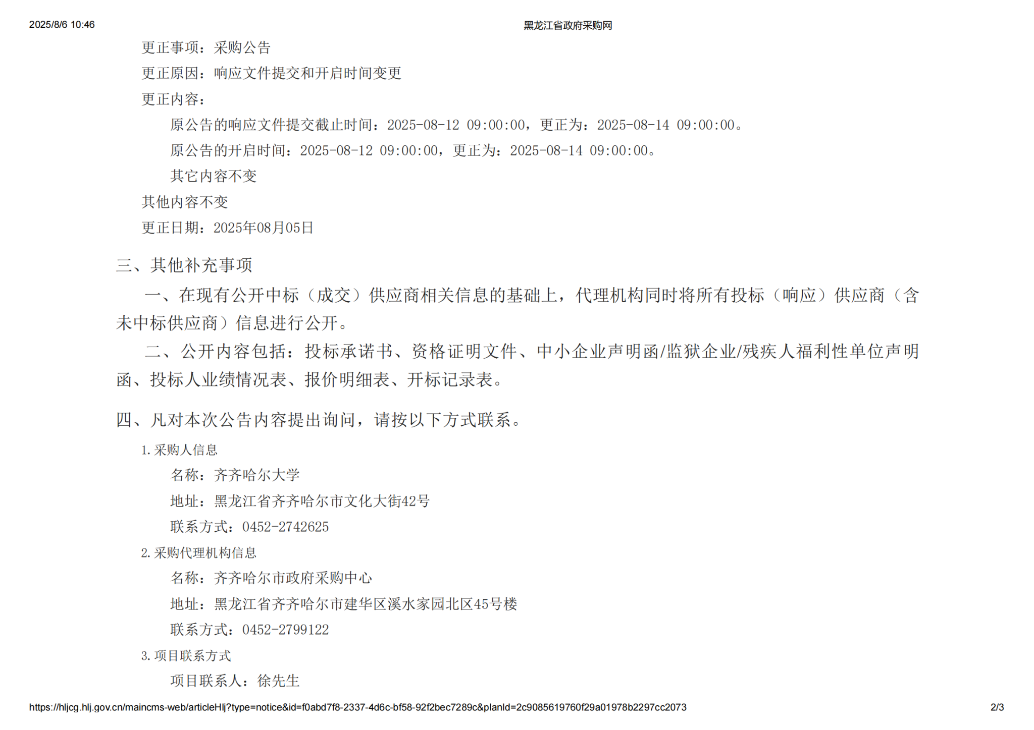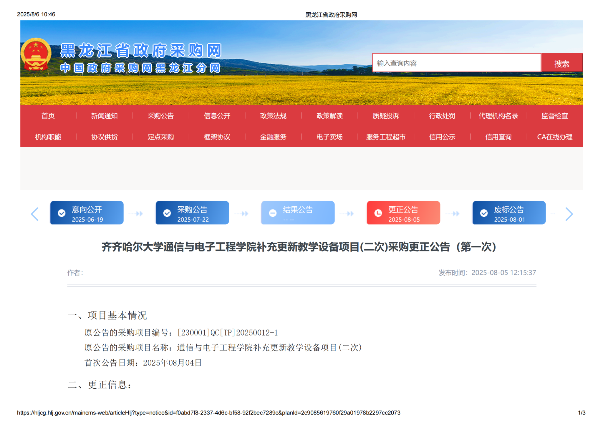 下一條:齊齊哈爾大學(xué)危險化學(xué)品暫存站維修(增加)項目(第2次)比價采購公告(轉(zhuǎn)自黑龍江省政府采購網(wǎng))