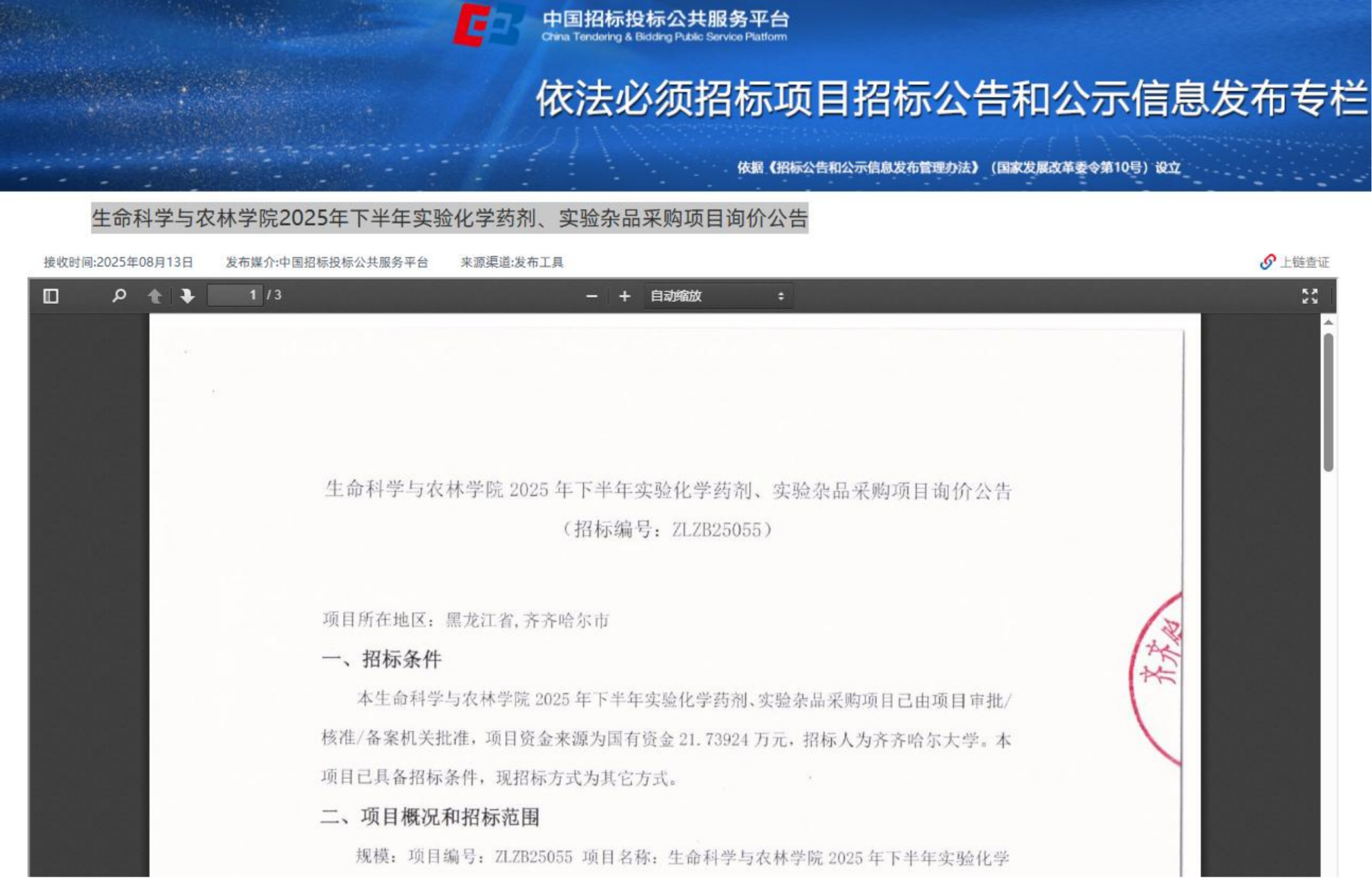 下一條:齊齊哈爾大學(xué)食堂洗碗設(shè)備采購(gòu)廢標(biāo)公告(轉(zhuǎn)自中國(guó)招標(biāo)投標(biāo)公共服務(wù)平臺(tái))