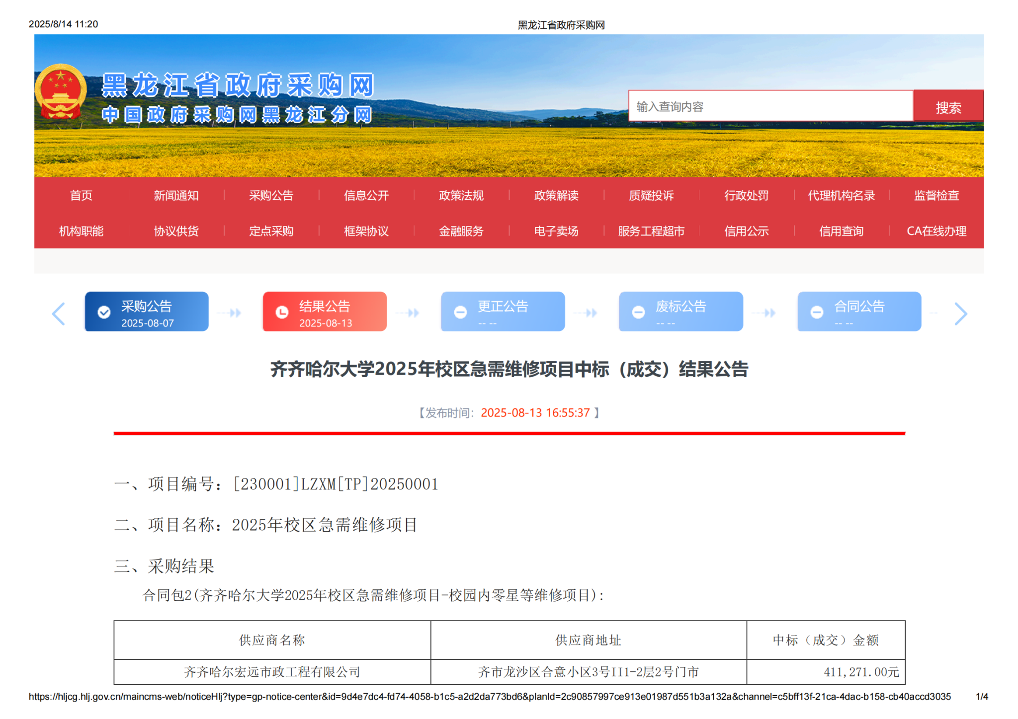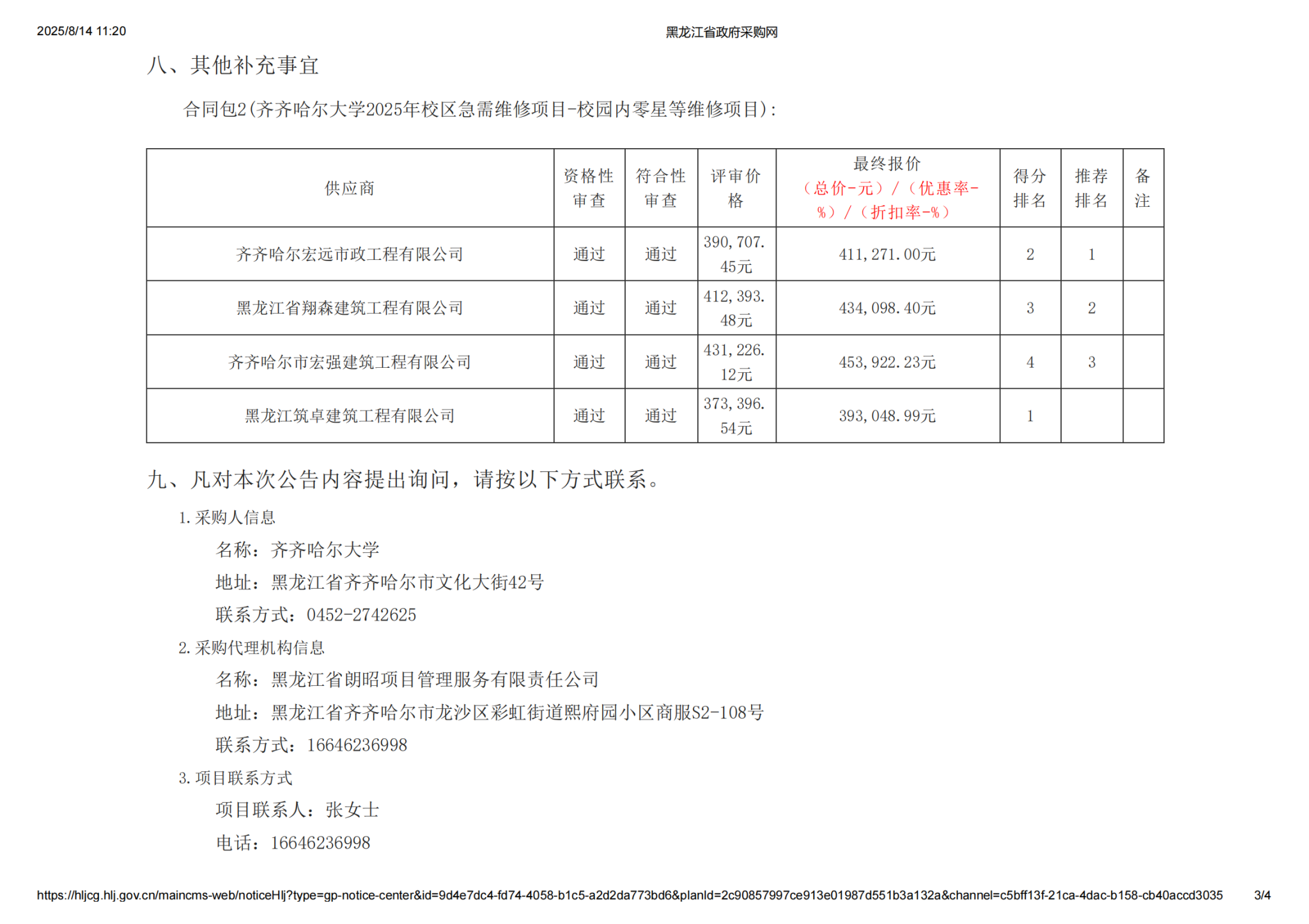 上一條:齊齊哈爾大學(xué)2025年校區(qū)急需維修項(xiàng)目中標(biāo)(成交)結(jié)果公告-齊齊哈爾市宏強(qiáng)建筑工程有限公司(轉(zhuǎn)自黑龍江省政府采購網(wǎng))