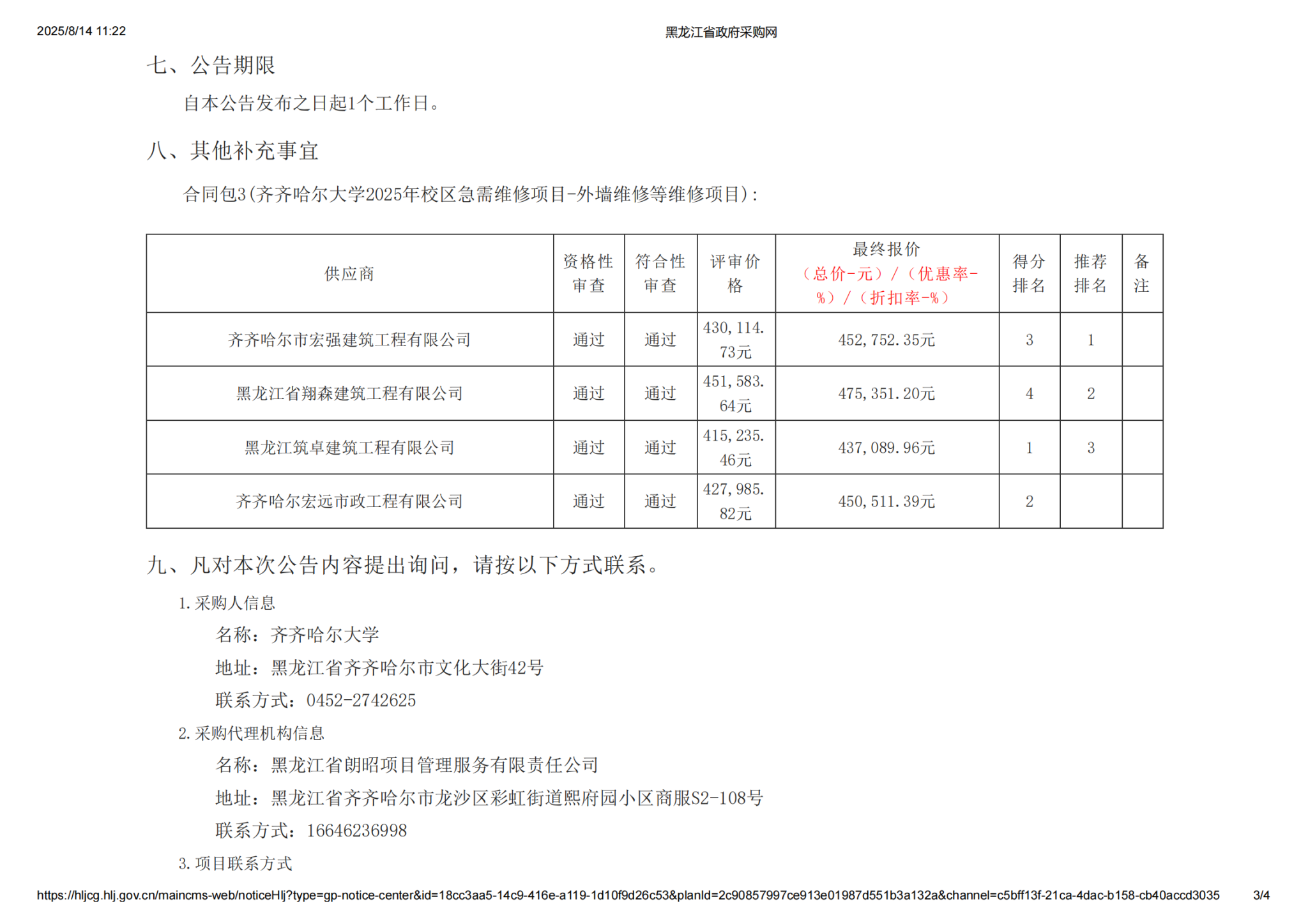 下一條:齊齊哈爾大學(xué)2025年校區(qū)急需維修項目中標(成交)結(jié)果公告-齊齊哈爾宏遠市政工程有限公司(轉(zhuǎn)自黑龍江省政府采購網(wǎng))