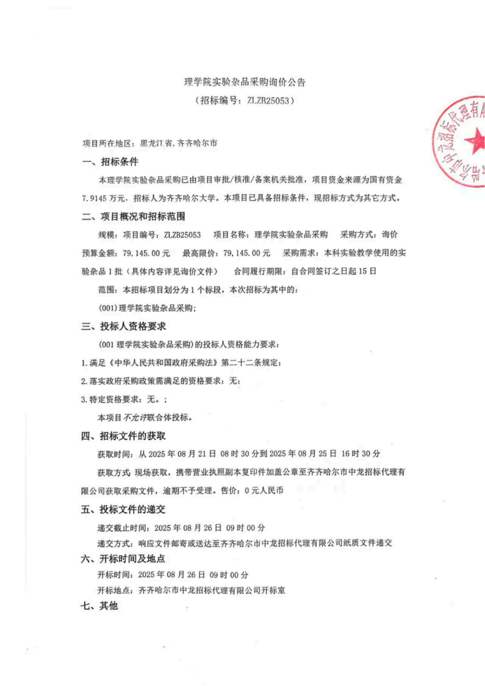 下一條:齊齊哈爾大學(xué)2025年校區(qū)急需維修項(xiàng)目-室內(nèi)零星等維修項(xiàng)目(第3次)比價(jià)采購結(jié)果公告(轉(zhuǎn)自黑龍江省政府采購網(wǎng))