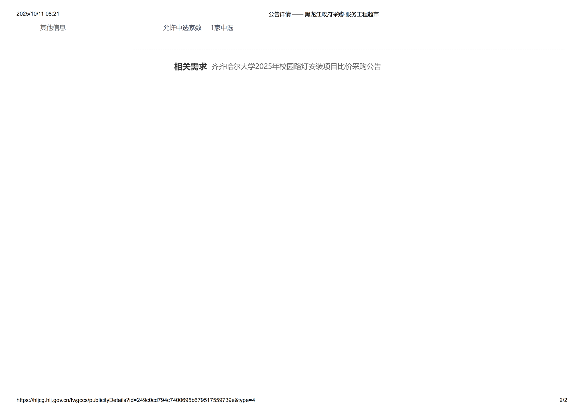 上一條:齊齊哈爾大學(xué)2025年校園路燈安裝項(xiàng)目(第2次)比價(jià)采購公告(轉(zhuǎn)自黑龍江省政府采購網(wǎng))