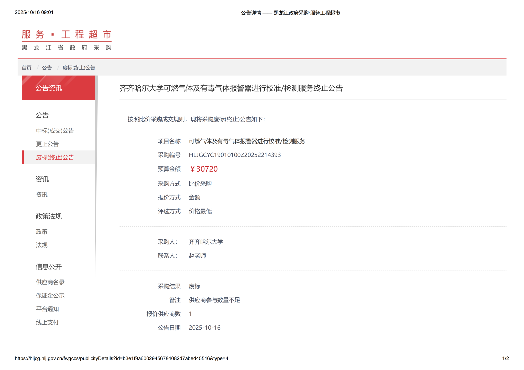 上一條:齊齊哈爾大學(xué)可燃?xì)怏w及有毒氣體報(bào)警器進(jìn)行校準(zhǔn)檢測(cè)服務(wù)(第2次)比價(jià)采購(gòu)公告(轉(zhuǎn)自黑龍江省政府采購(gòu)網(wǎng))