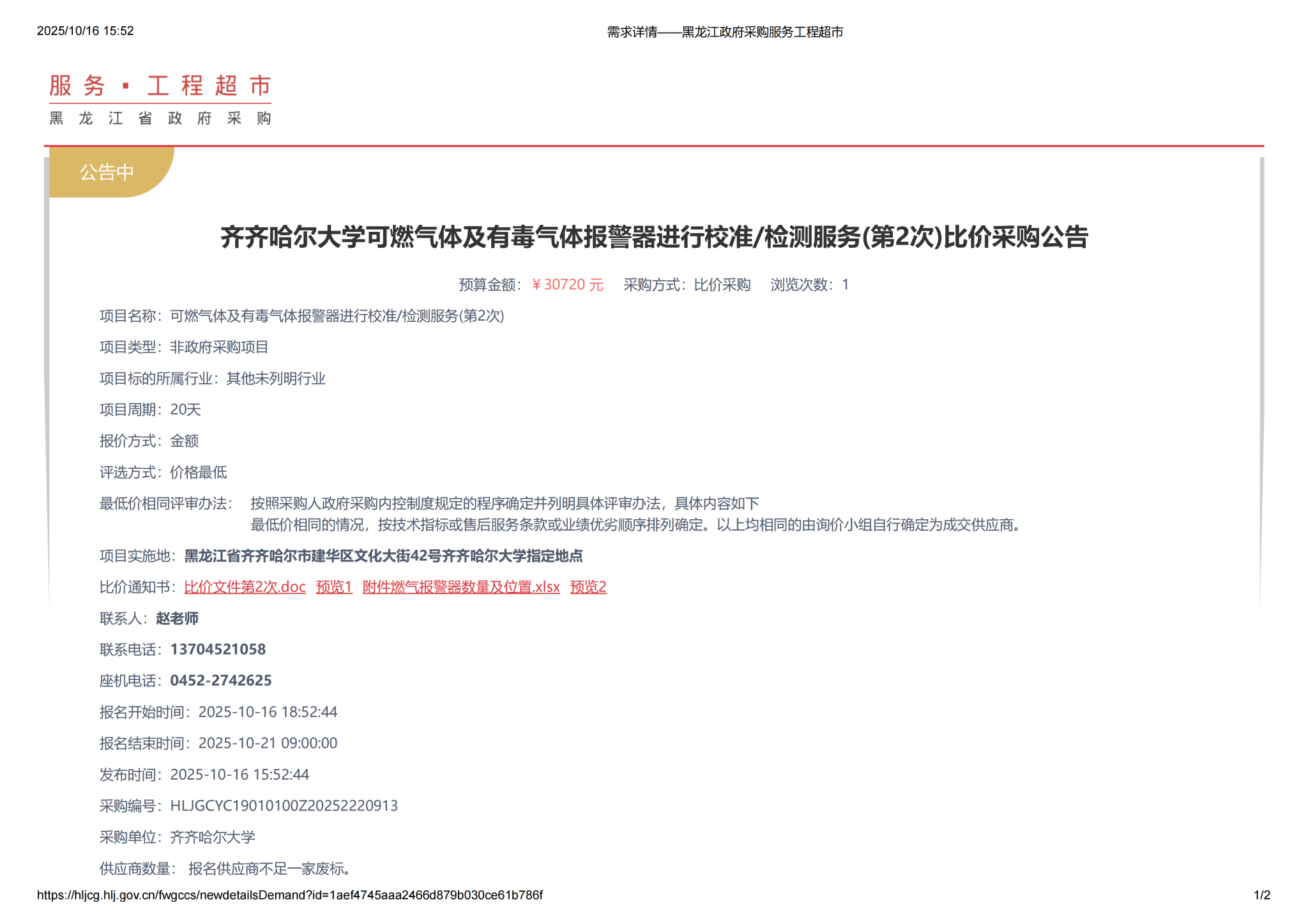 下一條:齊齊哈爾大學(xué)可燃?xì)怏w及有毒氣體報(bào)警器進(jìn)行校準(zhǔn)檢測(cè)服務(wù)終止公告(轉(zhuǎn)自黑龍江省政府采購(gòu)網(wǎng))