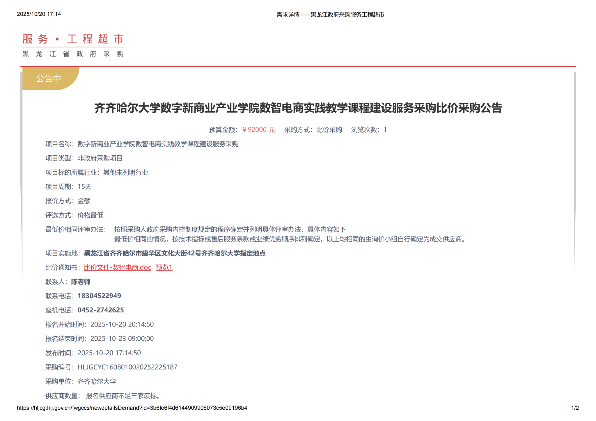 上一條:齊齊哈爾大學(xué)數(shù)字新商業(yè)產(chǎn)業(yè)學(xué)院數(shù)字營(yíng)銷實(shí)踐教學(xué)課程建設(shè)服務(wù)采購(gòu)比價(jià)采購(gòu)公告(轉(zhuǎn)自黑龍江省政府采購(gòu)網(wǎng))
