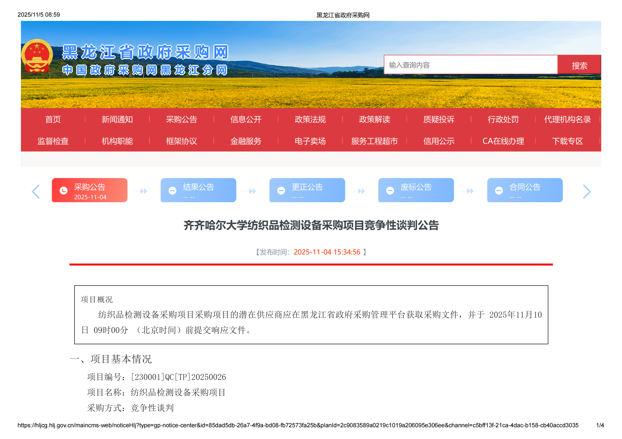 上一條:齊齊哈爾大學紡織品檢測設備采購項目結果公告(轉自黑龍江省政府采購網)