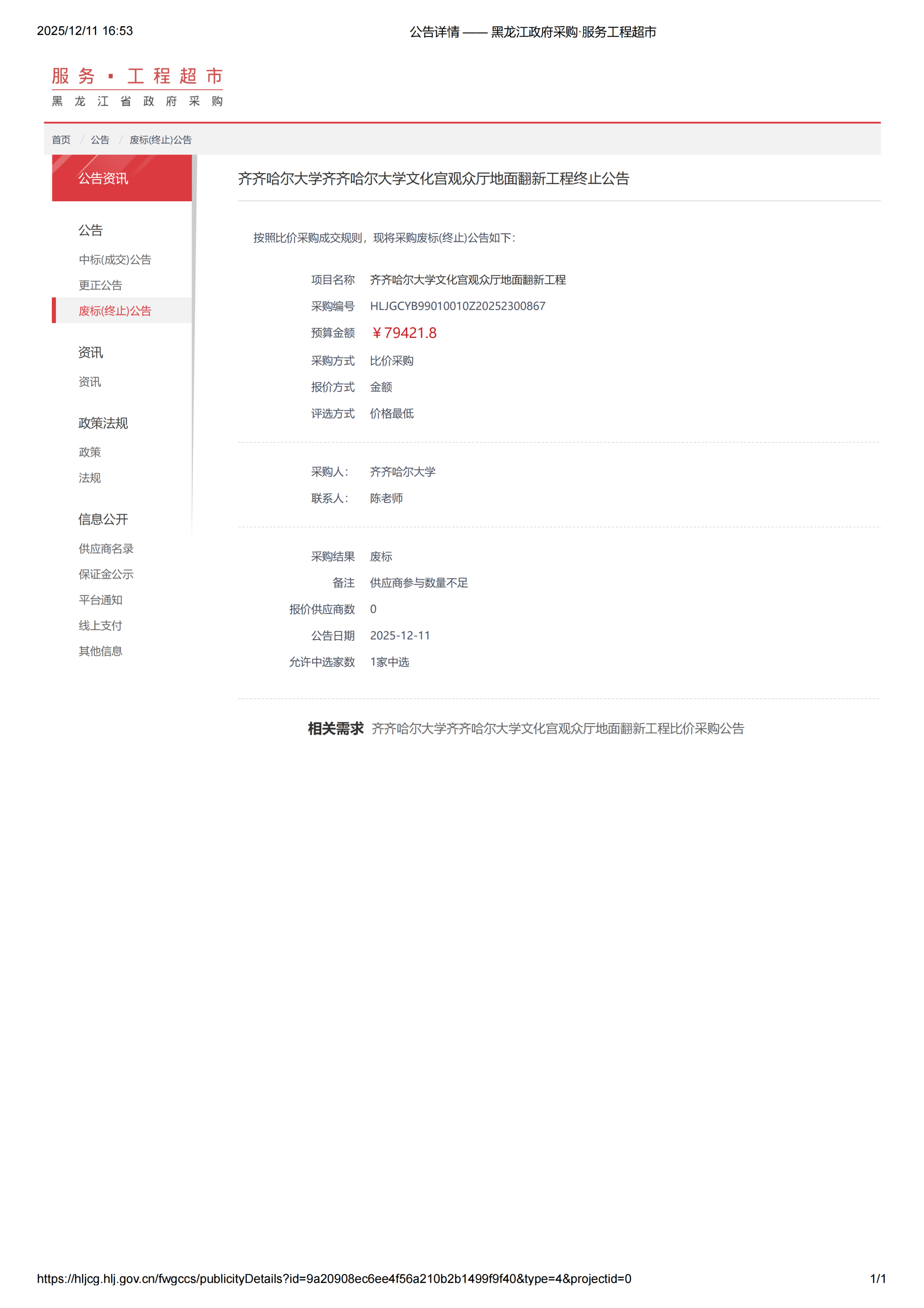 下一條:2025年齊齊哈爾大學(xué)“走讀式”談話室維修改造項目終止公告(轉(zhuǎn)自黑龍江省政府采購網(wǎng))