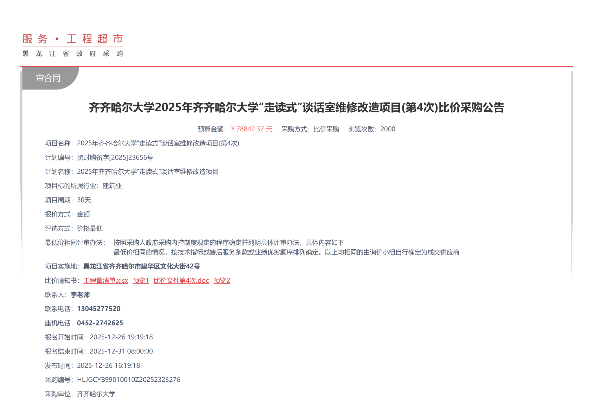 下一條:齊齊哈爾大學(xué)聲光報(bào)警器比價(jià)采購廢標(biāo)公告(一次)(轉(zhuǎn)自黑龍江省政府采購網(wǎng))