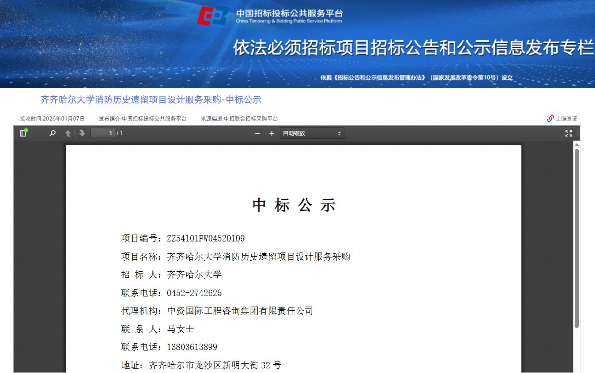 上一條:齊齊哈爾大學(xué)聲光報(bào)警器比價(jià)采購(gòu)需求公告(三次)(轉(zhuǎn)自黑龍江省政府采購(gòu)網(wǎng))