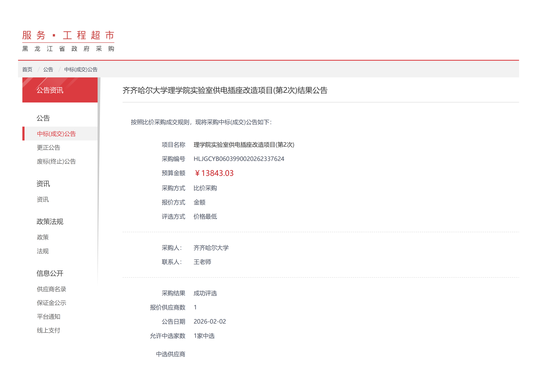 下一條:齊齊哈爾大學理學院實驗室供電插座改造項目(第2次)比價采購公告(轉自黑龍江省政府采購網)