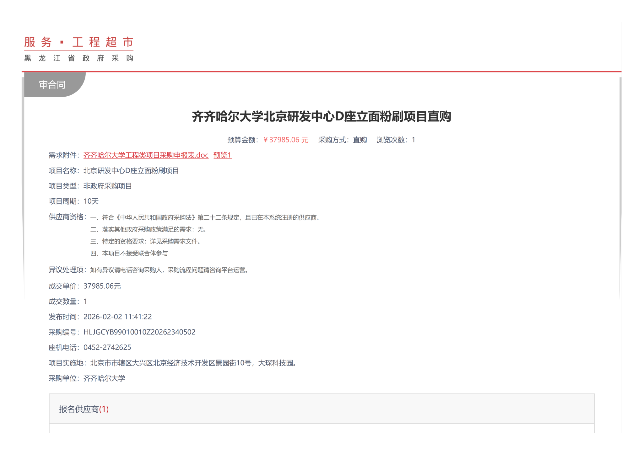 上一條:齊齊哈爾大學(xué)2026年維修工程項(xiàng)目竣工結(jié)算審核服務(wù)中標(biāo)(成交)結(jié)果公告(轉(zhuǎn)自黑龍江省政府采購(gòu)網(wǎng))