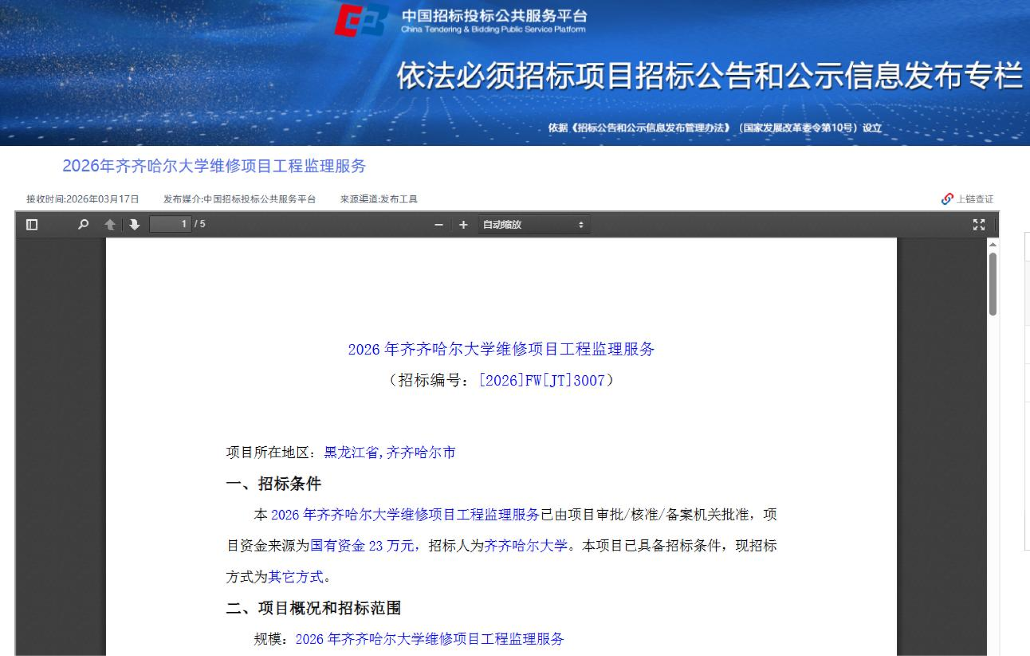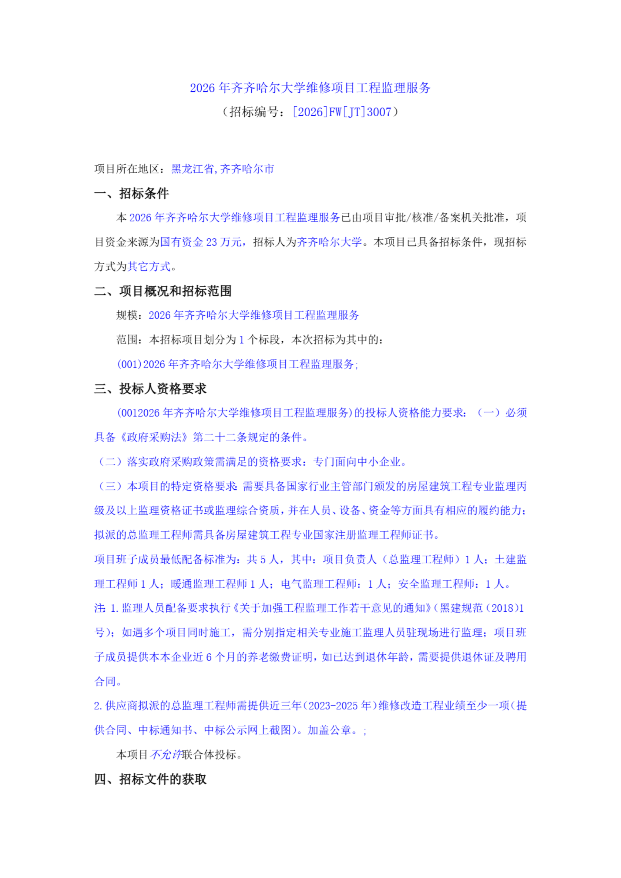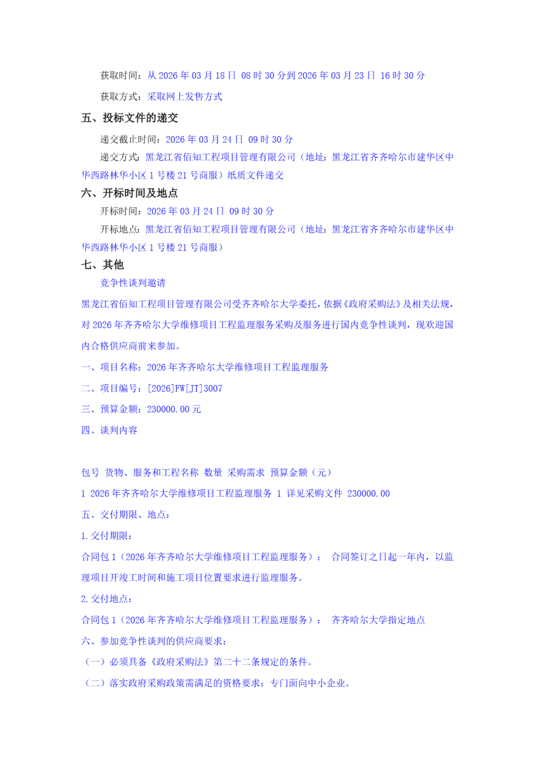 下一條:2026年齊齊哈爾大學維修項目圖紙圖審服務項目(第2次)比價采購公告(轉自黑龍江省政府采購網)
