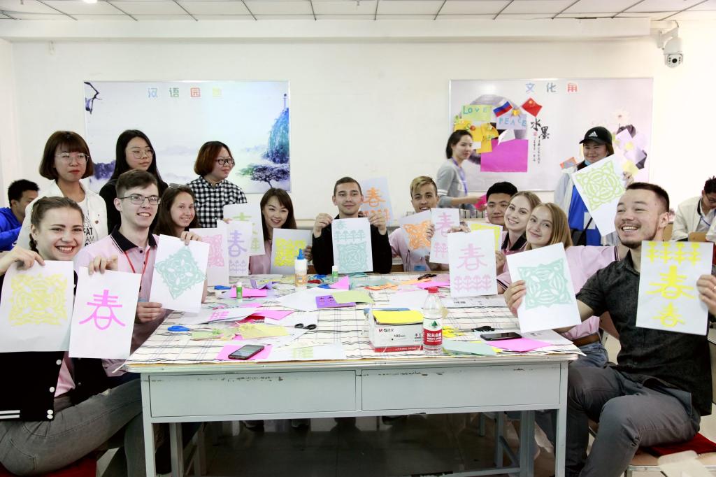 國(guó)際教育學(xué)院師生還在課堂上耐心細(xì)致地向俄羅斯師生講解了中國(guó)傳統(tǒng)手工藝剪紙的制作方法,俄羅斯學(xué)生們紛紛按照制作流程動(dòng)手實(shí)踐。