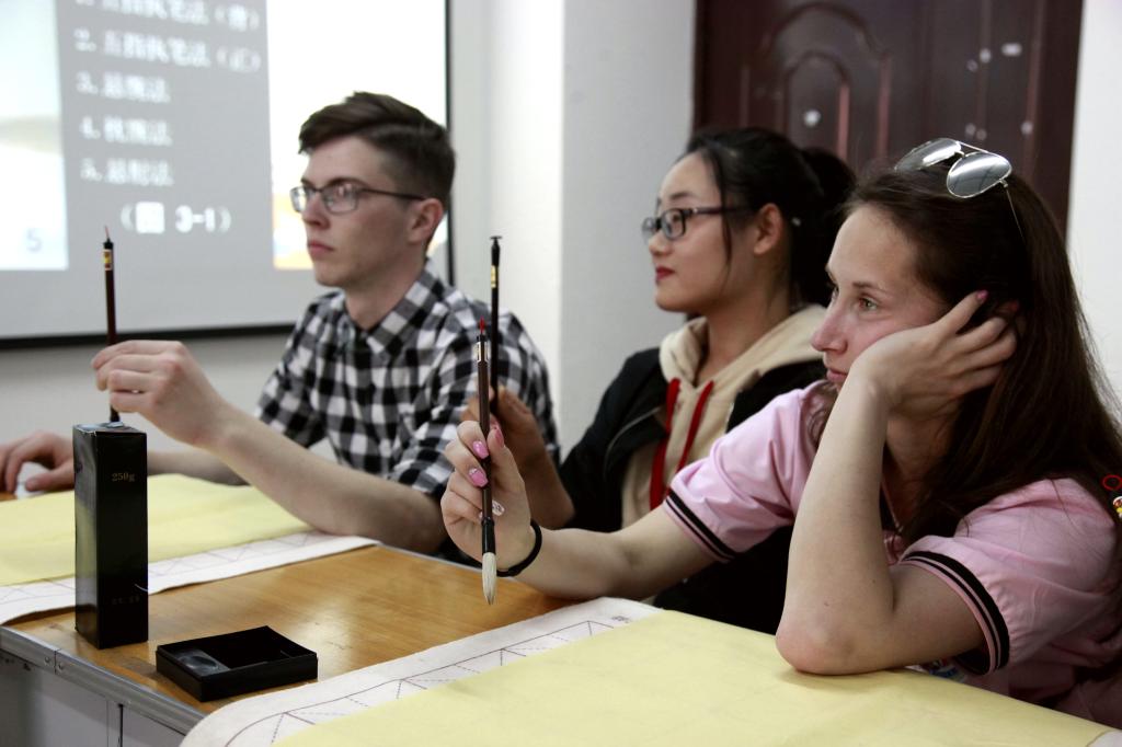 下午,國(guó)際教育學(xué)院訾希坤老師為來訪師生上了一堂精彩的書法基礎(chǔ)課。