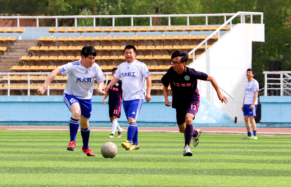 到了下半場,平均年齡三十多歲的教職工隊(duì)依舊保持著頑強(qiáng)的體力,開始組織更加強(qiáng)勢的進(jìn)攻。在比賽臨近結(jié)束的時(shí)候,教職工隊(duì)穿過層層防守,倚靠隊(duì)友配合,順利地進(jìn)行了一次打門,將比分變成了2:1?;で蜿?duì)也是始終保持著進(jìn)攻狀態(tài),下半場完成了很多次優(yōu)秀的打門。最終比賽以教職工隊(duì)2:1化工隊(duì)結(jié)束。