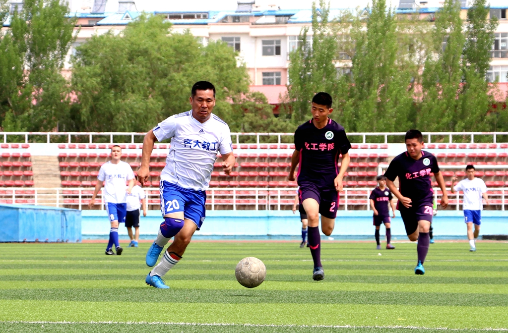 6月3日上午,學(xué)校教職工足球隊(duì)和第二屆校園足球聯(lián)賽冠軍隊(duì)—化學(xué)與化學(xué)工程學(xué)院代表隊(duì)在西區(qū)體育場舉行了一場足球友誼賽。