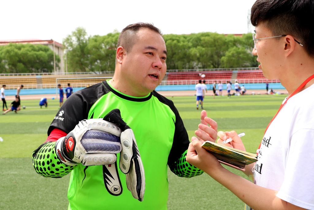 在比賽結(jié)束后大學(xué)生記者團(tuán)的學(xué)生記者采訪到教職工隊(duì)球員、音樂與舞蹈學(xué)院的孫博老師,他說:“我們?cè)陂L達(dá)一個(gè)月的準(zhǔn)備時(shí)間當(dāng)中,努力克服了體能不足、配合不好、傷病等困難。我們覺得,作為齊大的老師,就應(yīng)該有一種進(jìn)取向上的心態(tài),發(fā)揚(yáng)我?!B(yǎng)正毓德、精存自生’的校訓(xùn)精神?!?/p>