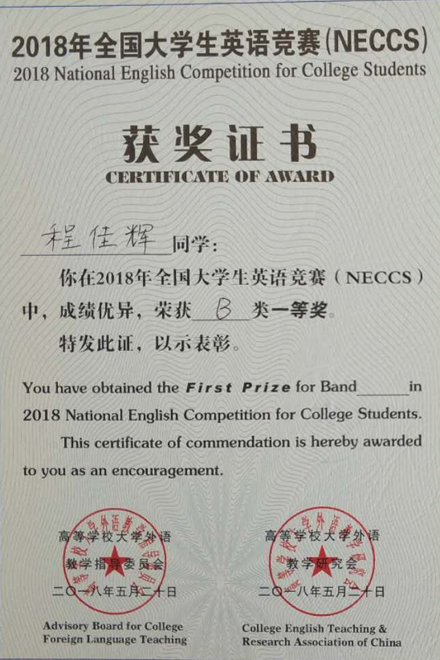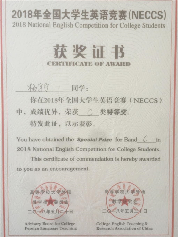 在初賽中化學與化學工程學院化工專業(yè)的楊宇寧、外國語學院英語系的程佳輝和趙雪坤同學脫穎而出取得了參加5月20日在哈爾濱理工大學舉行的黑龍江省賽區(qū)決賽資格。在決賽中他們不畏強手,勇于拼搏,憑借扎實的語言功底最終獲得了優(yōu)異成績,其中化學與化學工程學院化工專業(yè)的楊宇寧同學獲得C類國家級特等獎,外國語學院英語系的程佳輝和趙雪坤同學獲得B類國家級一等獎。