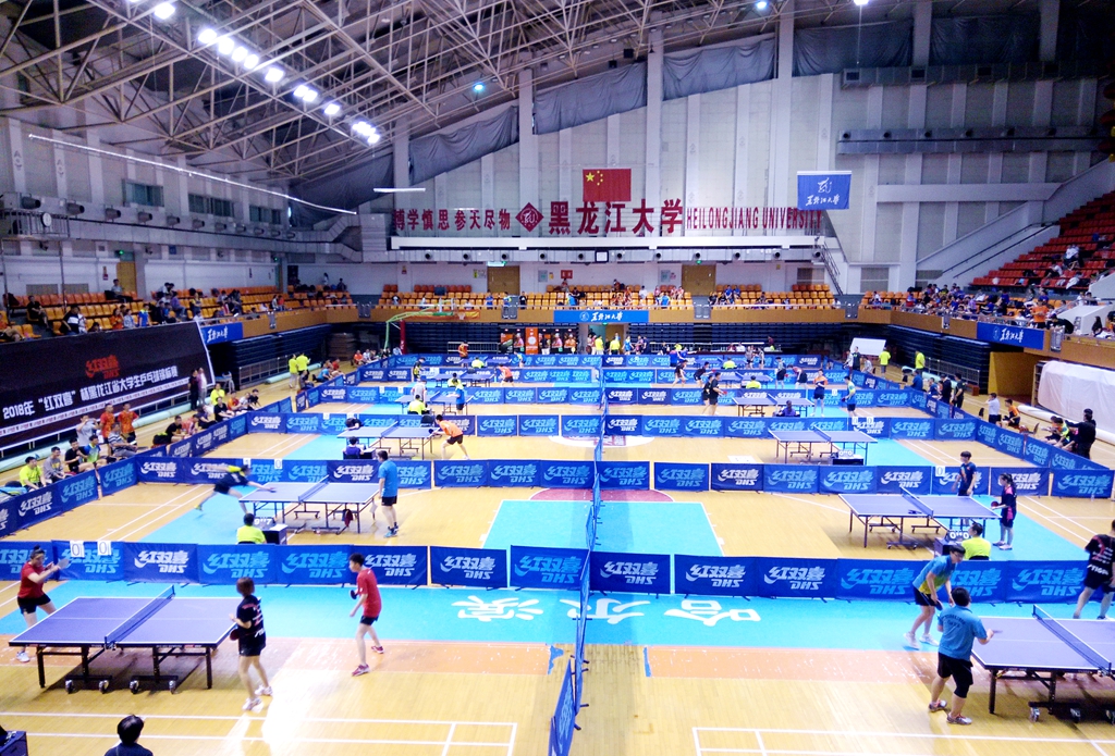 同期,2018年“紅雙喜”杯黑龍江省大學(xué)生乒乓球錦標(biāo)賽在黑龍江大學(xué)體育館舉行。共有來(lái)自全省38所學(xué)校、240名運(yùn)動(dòng)員參加了比賽。