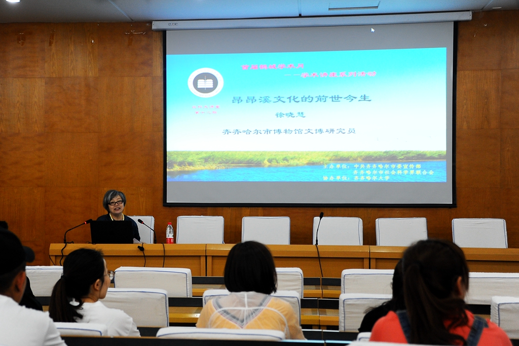 在講座中,徐曉慧以《昂昂溪文化的前世今生》為題,從昂昂溪文化——北方文化的基石、昂昂溪文化——北方漁獵文明的搖籃、昂昂溪文化——現(xiàn)代考古學(xué)的標(biāo)桿等三個(gè)方面詳細(xì)闡釋了位于齊齊哈爾市中心城區(qū)西南側(cè)的昂昂溪古文化遺址的發(fā)掘過(guò)程和研究現(xiàn)狀。她建議同學(xué)們?cè)趯W(xué)習(xí)歷史文化的過(guò)程中要深入研究文獻(xiàn)資料,還要充分利用最新的考古研究成果,采用多學(xué)科、多方位的研究手段,才能得出讓學(xué)界所認(rèn)同的新認(rèn)識(shí)。也只有這樣,才能推動(dòng)考古學(xué)和歷史文化研究的深入和發(fā)展。