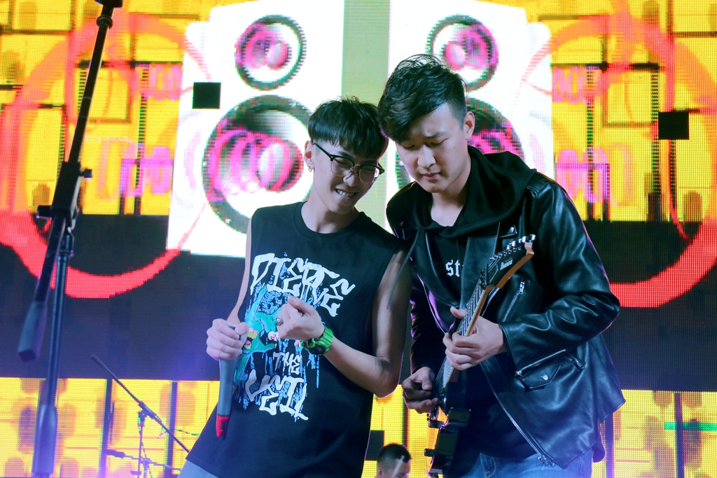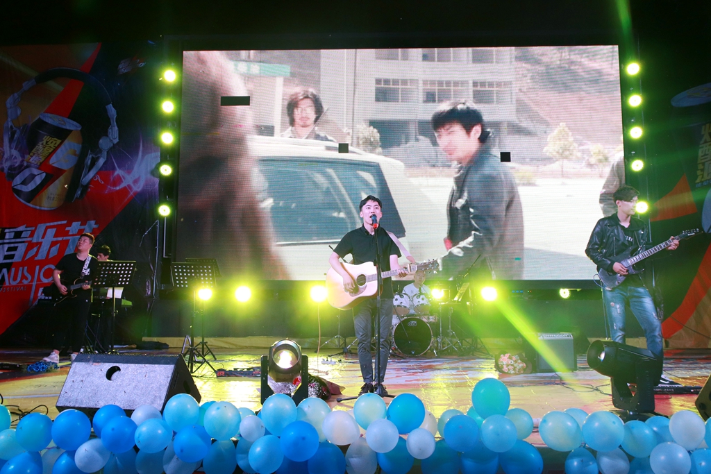 游戲過后,一段小清新的的VCR照亮了些許擦黑的天空,短片的主角——磐石樂隊(duì)與千思宇同學(xué)帶著一首《辛德瑞拉》甜蜜的登場,灰姑娘蜂蜜般的微笑被他們唱成了曲,融化了黑夜的寂寥;鼓點(diǎn)輕俏,就似辛德瑞拉穿著的水晶鞋寬寬走來?!霸趺磿?huì)愛上了她,并決定跟她回家,放棄了我的所有我的一切無所謂?!庇膳褪瘶逢?duì)許可同學(xué)帶來現(xiàn)場版的《紙短情長》,伴著紫色的燈光、糖果色的追光,走進(jìn)了現(xiàn)場男男女女的心房,“我們的故事都是關(guān)于你啊”,今夜的故事也由你們寫下。聽完了幾首甜絲絲的歌曲,不妨換換口味。由景澤同學(xué)與磐石樂隊(duì)帶來的《東北人都是活雷鋒》為今晚的音樂節(jié)帶來一絲詼諧與幽默。今晚的磐石不光堅(jiān)硬,還帶著一絲絲甜蜜。期待著磐石再度為我們帶來不一樣的搖滾與激情。