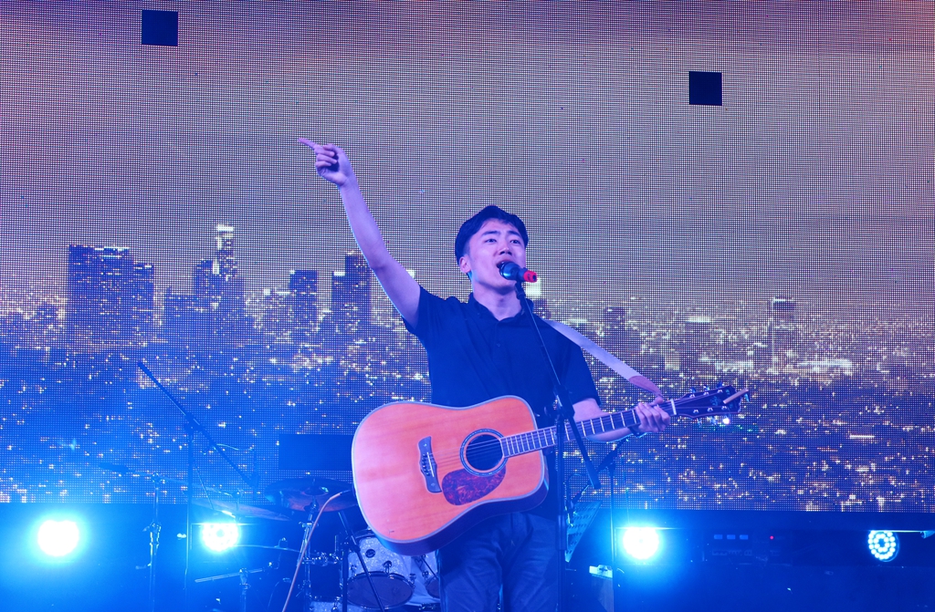 首先閃亮登場的是工建路46號(hào)樂隊(duì),在燈光閃耀下6位搖滾的少年嗨唱著自己的態(tài)度。舞臺(tái)上他們迸發(fā)著青春、斗志昂揚(yáng)、永不低頭,仿佛整個(gè)廣場上的空氣都被他們點(diǎn)燃,彩燈照耀著的全是他們的不羈?!蛾柟庹小犯呖禾S,“讓我們乘著陽光,海上沖浪!”他們的跳躍帶著微笑,微笑時(shí)主唱臉上的酒窩好像可以甜化人的心房,今夜臺(tái)上的“陽光宅男”比音符更加閃亮。緊接著一首數(shù)碼寶貝的主題曲《butterfly》,妥妥的回憶殺,藏在童年心底的“八神太一”和“亞古獸”立刻被這首歌喚醒,在三致廣場上再次登場?!禨omething’s going on》帶著強(qiáng)烈的鼓點(diǎn),即使是最后一首歌卻依然抓耳,為他們的今晚表演畫上完美的句號(hào)。今天的“公建路46號(hào)”樂隊(duì)非常帥!