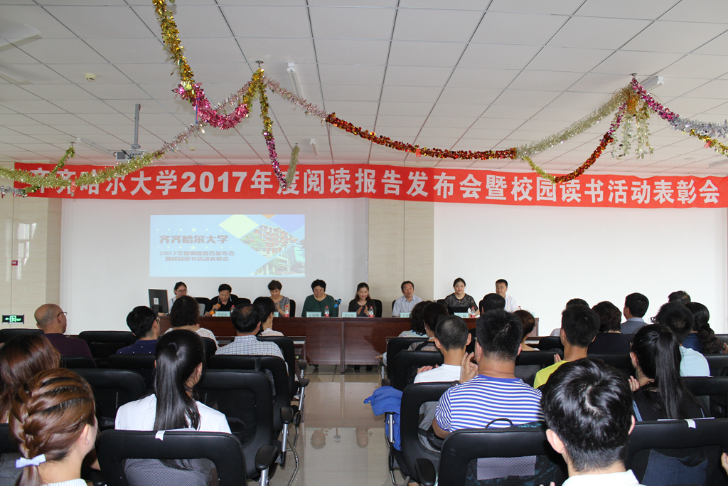 讀有溫度的書,遇見有趣的靈魂。7月11日上午,齊齊哈爾大學(xué)2017年度閱讀報告發(fā)布會暨校園讀書活動表彰會在圖書館東區(qū)館8樓報告廳隆重舉行。校黨委副書記齊宏偉、副校長呂厚均出席了會議,宣傳統(tǒng)戰(zhàn)部部長王曉梅、校團委書記蘇醒、圖書館黨委書記胥軍、館長宋波,以及研究生部、各學(xué)院主管學(xué)生工作的領(lǐng)導(dǎo)、教師代表、學(xué)生代表參加了會議。會議由圖書館副館長管振岐主持。