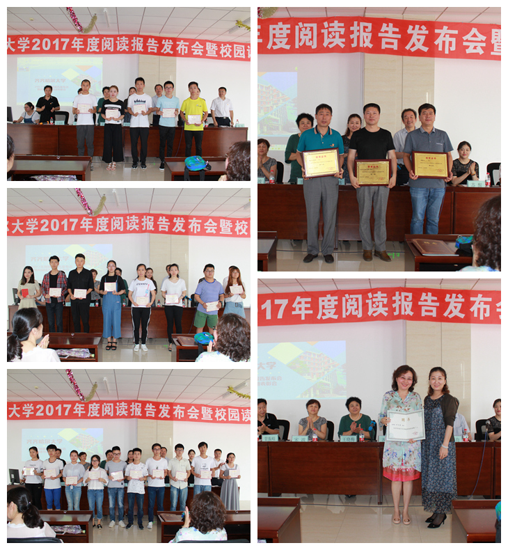 齊宏偉宣讀了2017年度齊齊哈爾大學(xué)閱讀活動中表現(xiàn)優(yōu)異的學(xué)院、學(xué)生名單,并與參會領(lǐng)導(dǎo)一起為獲獎單位、獲獎?wù)哳C獎。