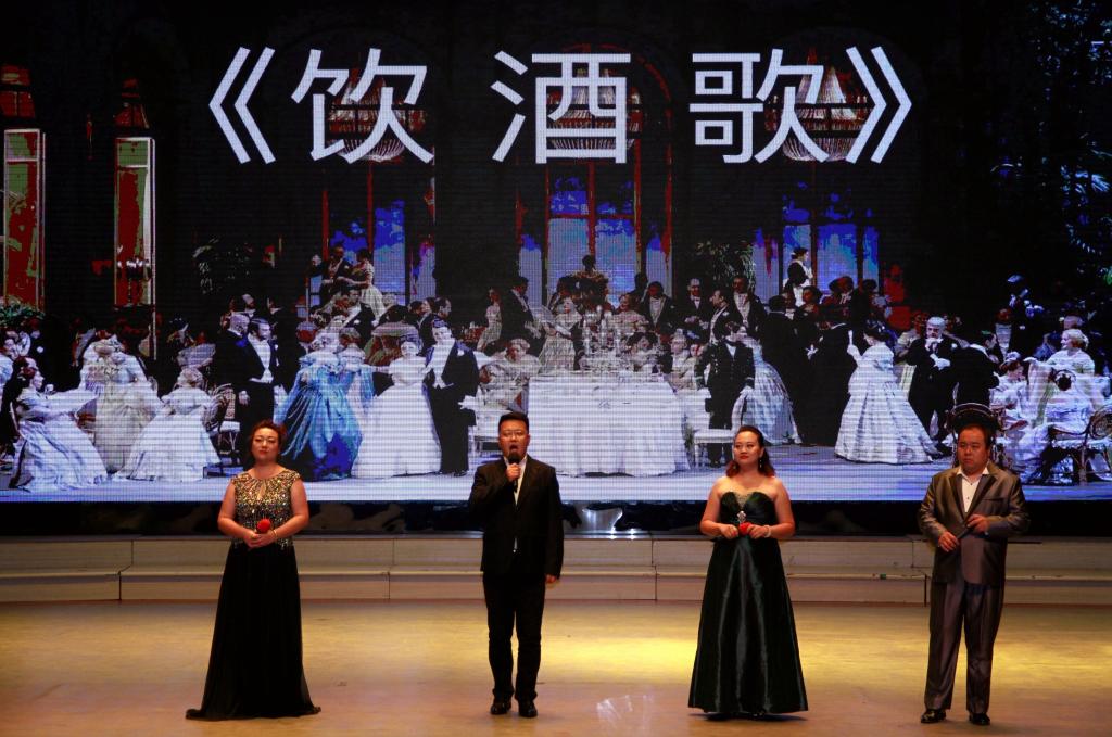 孫博、程丁、張白雪、馮翔琪四位老師為新生同學(xué)們帶來了男女生四重唱《飲酒歌》,《飲酒歌》選自歌劇《茶花女》第一幕,唱出了男女主人公為青春、為美好愛情干杯,表達(dá)了他們對真誠愛情的渴望和贊美。曲調(diào)輕快優(yōu)雅、旋律鮮明,博得現(xiàn)場同學(xué)們熱烈的掌聲。