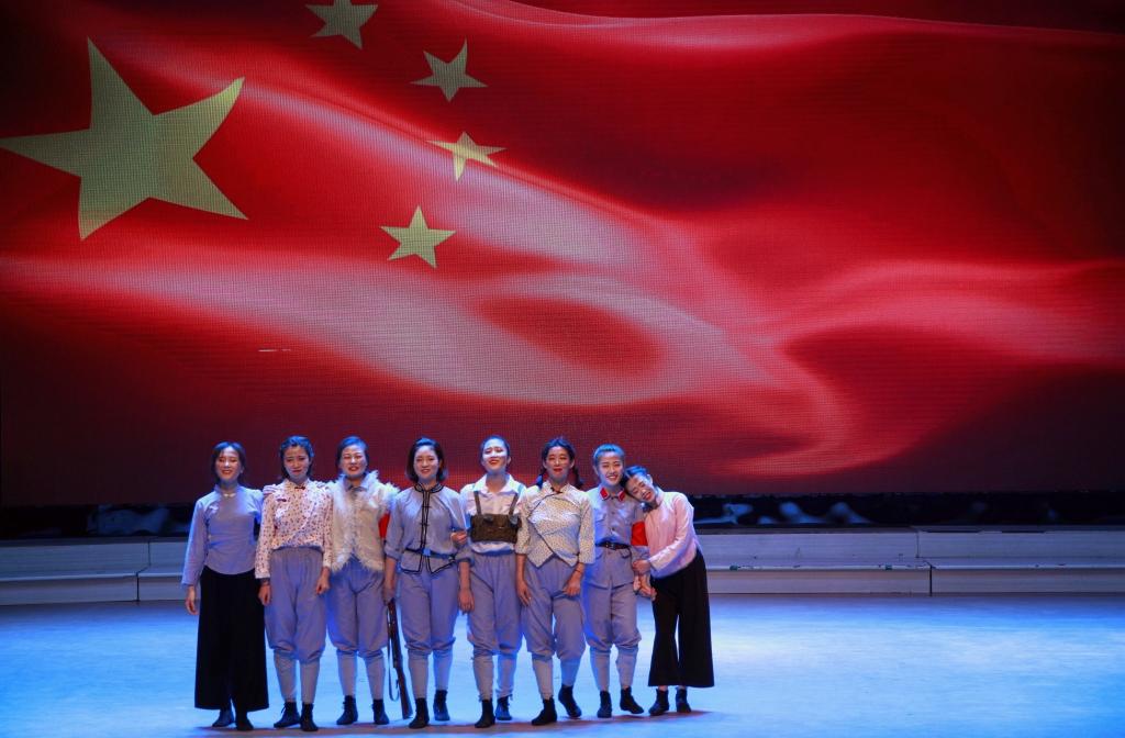 舞蹈系161班同學(xué)們表演了振奮人心的舞蹈作品《八女投江》,用形象的肢體語言表現(xiàn)了八位烈士寧死不屈、英勇獻(xiàn)身的精神。
