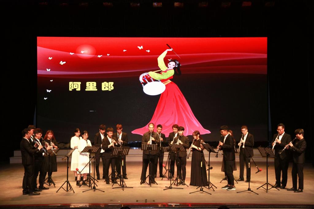 由張明一等同學(xué)表演的單簧管齊奏《阿里郎》,曲調(diào)委婉抒情、節(jié)奏輕快流暢,富有民族氣息,博得觀眾陣陣掌聲。