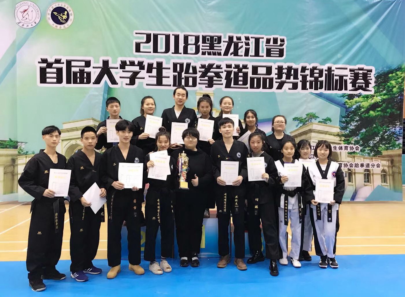 12月1日,黑龍江省大學生體育協會跆拳道分會在黑龍江大學體育館舉辦了黑龍江省首屆大學生跆拳道錦標賽。來自全省9所高校的代表隊參加了比賽。