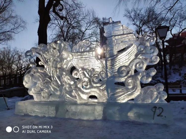(普通雪雕二等獎作品《航海驚濤》)