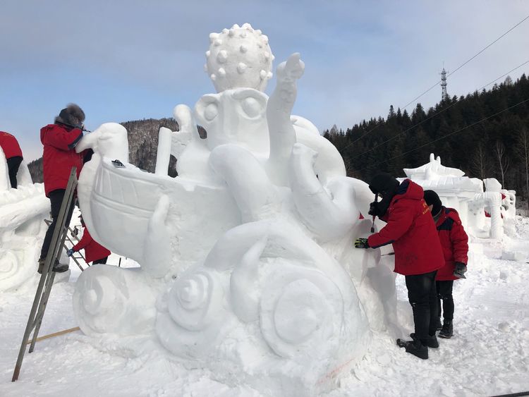 我校師生冰雕雪雕團(tuán)隊在冰天雪地中尋找激情,在理性與感性中參悟冰雪,在寒風(fēng)刺骨中磨練意志。他們用有溫度的雙手,在寒冷的冰塊雪塊上鐫刻,塑造出有生命力的藝術(shù)作品。這是我校美術(shù)與藝術(shù)設(shè)計學(xué)院師生深入探索教學(xué)與實踐相結(jié)合的教學(xué)模式、培養(yǎng)學(xué)生的藝術(shù)創(chuàng)新、綜合實踐能力的新成果,他們以實際行動踐行習(xí)近平總書記“冰天雪地也是金山銀山”的重要指示精神,為促進(jìn)黑龍江省經(jīng)濟(jì)發(fā)展及冰雪文化旅游做出了貢獻(xiàn)。