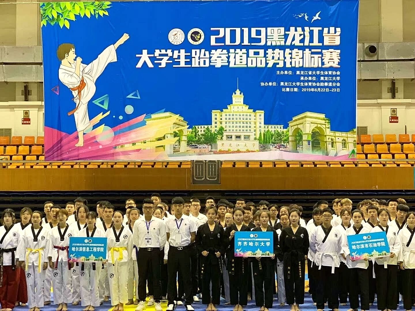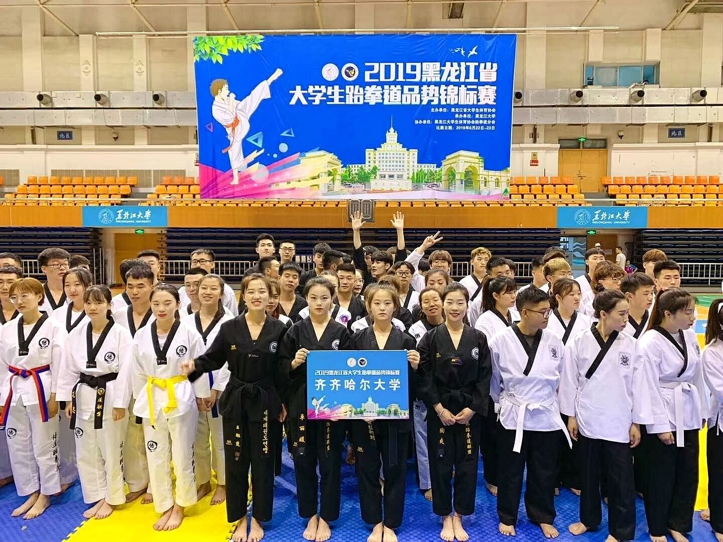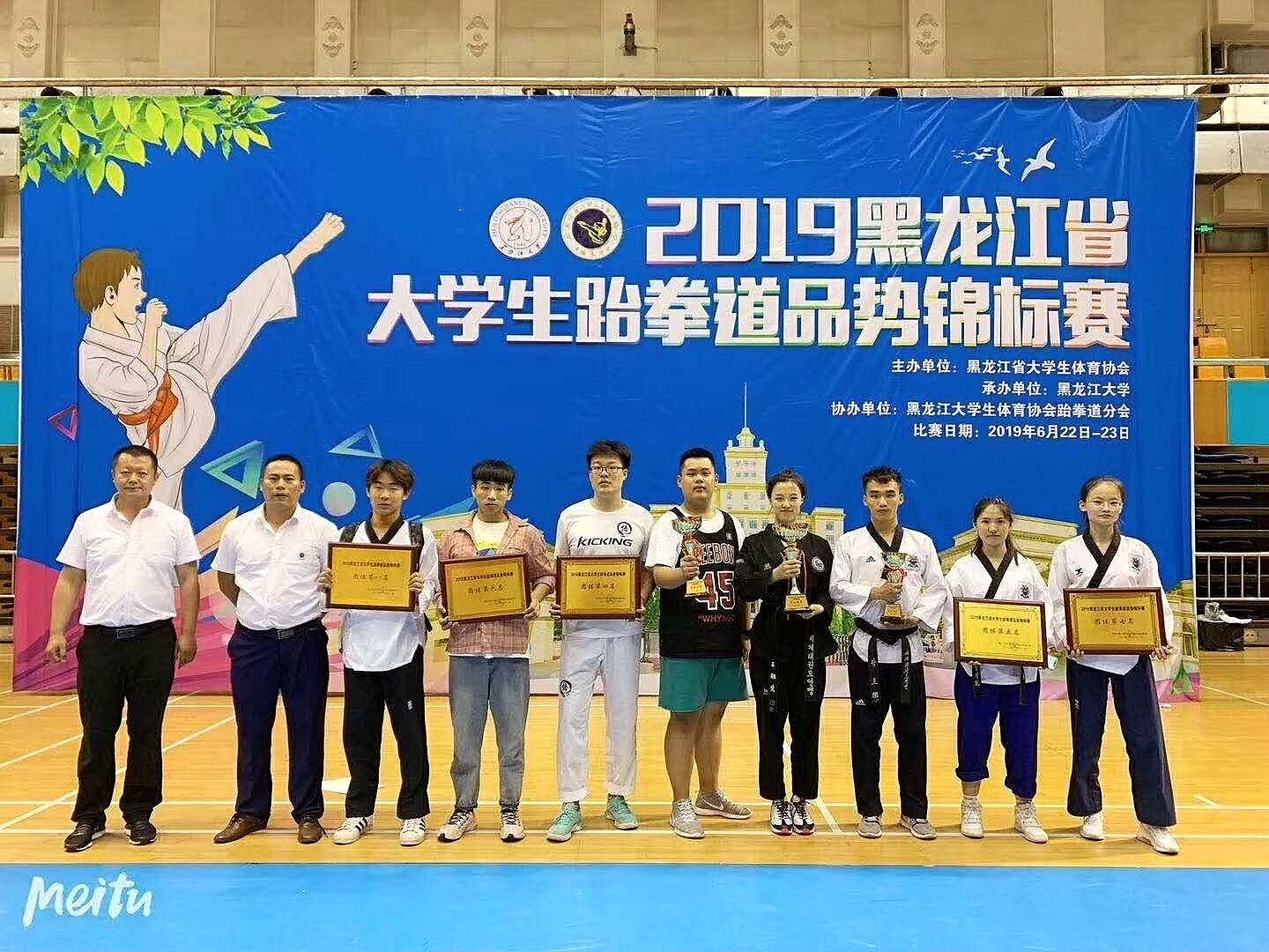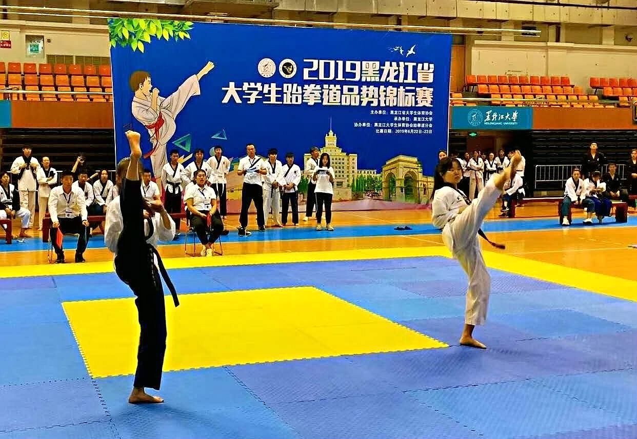 6月23日,為期兩天的2019黑龍江省大學(xué)生跆拳道錦標(biāo)賽在黑龍江大學(xué)體育館落下帷幕,我校選派了28名學(xué)生參加比賽。經(jīng)過2天共計(jì)410場(chǎng)激烈角逐,我校參賽選手共斬獲20枚金牌、18枚銀牌、7枚銅牌并獲得跆拳舞金獎(jiǎng),以總分276.5分的好成績(jī)勇奪此次比賽團(tuán)體冠軍。