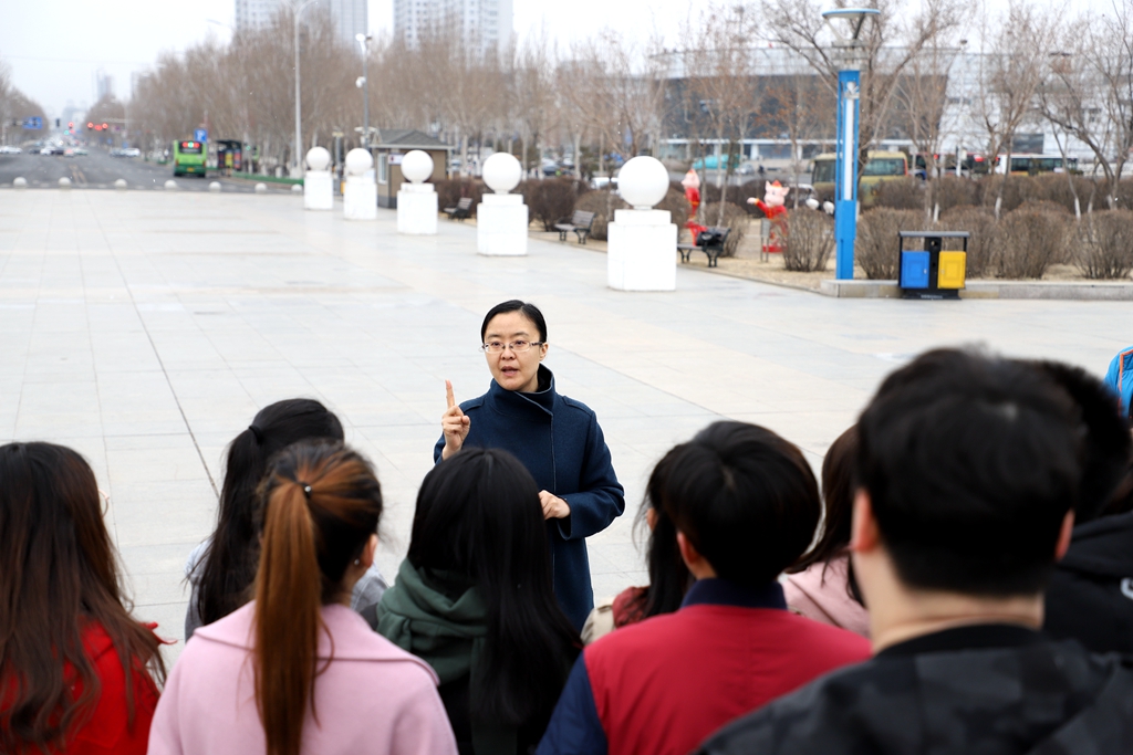 四是積極探索并實踐現(xiàn)場實踐教學(xué),引領(lǐng)思政課育人新模式。為推動課堂教學(xué)革命、努力打造“金課”加快推進(jìn)一流課程建設(shè),提升思想政治理論課的教學(xué)時效性,龐晶積極探索實踐育人模式。她通過加強實踐教學(xué)和嘗試倡導(dǎo)建立實踐基地來達(dá)到更好的育人功能。課程中增加了在任課教師指導(dǎo)下實踐調(diào)研教學(xué)環(huán)節(jié),成為課程考核的一部分。她在認(rèn)真研讀《毛澤東思想和中國特色社會主義理論體系》教材和對齊齊哈爾市博物館、烈士陵園、和平廣場、齊齊哈爾市車輛廠、中國第一重型機(jī)械廠、齊齊哈爾第二機(jī)場的歷史和現(xiàn)狀進(jìn)行了認(rèn)真的研究后,找到理論與實踐的結(jié)合點構(gòu)建實踐教學(xué)模式。于2019年4月4日在和平廣場、2019年5月6日在齊齊哈爾市博物館分別進(jìn)行了《緬懷抗日英雄 厚植家國情懷》的新民主主義革命理論知識模塊的現(xiàn)場教學(xué),通過和平廣場抗日英雄紀(jì)念墻上和博物館的英雄人物事跡感受英雄們的民族氣節(jié)和感染學(xué)生的家國情懷,這些現(xiàn)場教學(xué)情況和經(jīng)驗后由學(xué)院領(lǐng)導(dǎo)向市領(lǐng)導(dǎo)進(jìn)行匯報,得到市領(lǐng)導(dǎo)的支持和好評!