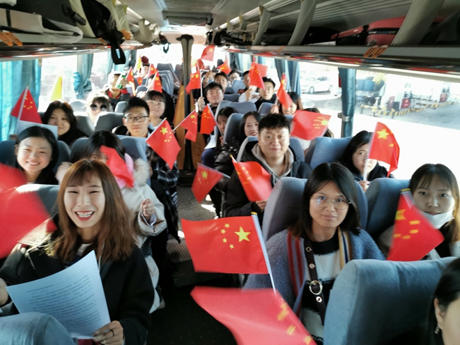 集中學(xué)習(xí)夯實理論底蘊(yùn)。9月14日10:00,在齊齊哈爾開往鶴崗的大客車上,臨時黨支部組織師生黨員、入黨積極分子認(rèn)真學(xué)習(xí)習(xí)近平總書記重要講話精神。臨時黨支部書記陳曦澤、副書記李美虹、宣傳委員鄧重博分別領(lǐng)學(xué)了習(xí)近平總書記在慶祝中華人民共和國成立70周年大會上、在國家勛章和國家榮譽(yù)稱號頒授儀式上、在慶祝中華人民共和國成立70周年招待會上的3篇重要講話。