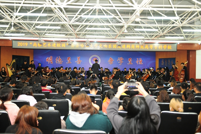 在“不忘初心、牢記使命”主題教育深入開展之際,10月14日至18日,受黑龍江省教育廳、文化和旅游廳、財政廳的委托,我校黨委宣傳部副部長何強(qiáng),音樂與舞蹈學(xué)院副院長殷進(jìn)良,帶領(lǐng)齊齊哈爾大學(xué)交響樂團(tuán)70余名師生,赴鶴崗師范高等專科學(xué)校、黑龍江冰雪體育職業(yè)學(xué)院、哈爾濱應(yīng)用職業(yè)技術(shù)學(xué)院、哈爾濱科學(xué)技術(shù)職業(yè)學(xué)院,開展了四場“高雅藝術(shù)進(jìn)校園”專場演出,受到四所高校2000余名師生的熱烈歡迎和高度贊譽(yù)。
