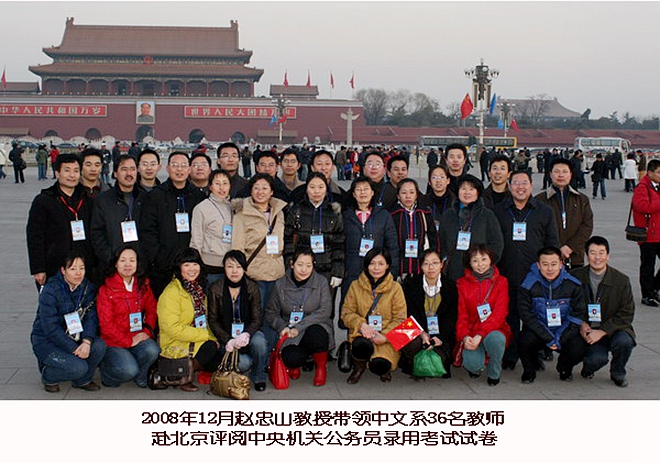 內(nèi)強(qiáng)素質(zhì)的同時還要外樹形象,2007年12月12日,應(yīng)國家人力資源部邀請,他帶領(lǐng)36名中文系教師赴京評閱2008年中央機(jī)關(guān)公務(wù)員考試試卷,贏得了原國家人事部、各兄弟院校、兄弟單位的一致好評,為齊齊哈爾大學(xué)、齊齊哈爾市,乃至黑龍江省爭得了榮譽(yù)。2008年,趙忠山教授緊緊抓住慶祝中文系建系五十周年的契機(jī),廣泛邀請社會各屆人士參與其中,廣泛聯(lián)系畢業(yè)生中有一定影響的學(xué)生積極為系慶作貢獻(xiàn)。2008年7月15日,在校領(lǐng)導(dǎo)的大力支持下,中文系成功舉辦建系五十年慶典活動,產(chǎn)生了良好的社會反響。多年來,中文系為我校教評創(chuàng)優(yōu)和創(chuàng)建省屬重點大學(xué)貢獻(xiàn)了力量,多次獲省、市、校的表彰和獎勵,被《光明日報》、《中國教育報》、《齊齊哈爾日報》等各大媒體熱忱報道。