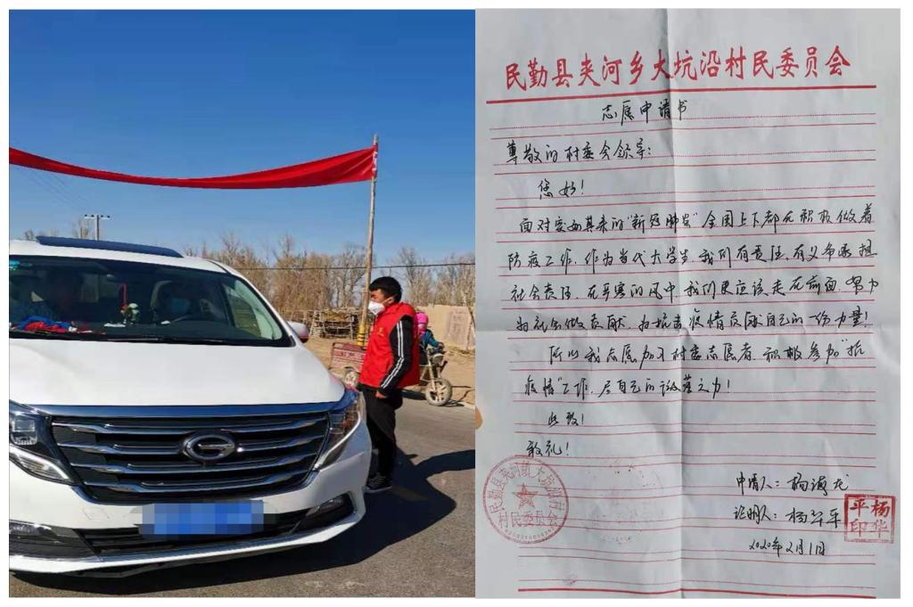 楊海龍是園藝191班學(xué)生,在這次抗擊疫情的戰(zhàn)斗中,他積極響應(yīng)民勤縣委宣傳部、縣文明辦發(fā)布的志愿者倡議,主動提交申請書,申請成為了一名大學(xué)生抗擊疫情志愿者。在抗擊疫情工作中,他積極投身到疫情防控一線,主動申請到農(nóng)村防控點“蹲點”執(zhí)勤,耐心勸返外來人員,,為打贏疫情防控阻擊戰(zhàn)貢獻(xiàn)出了自己的一份力量。