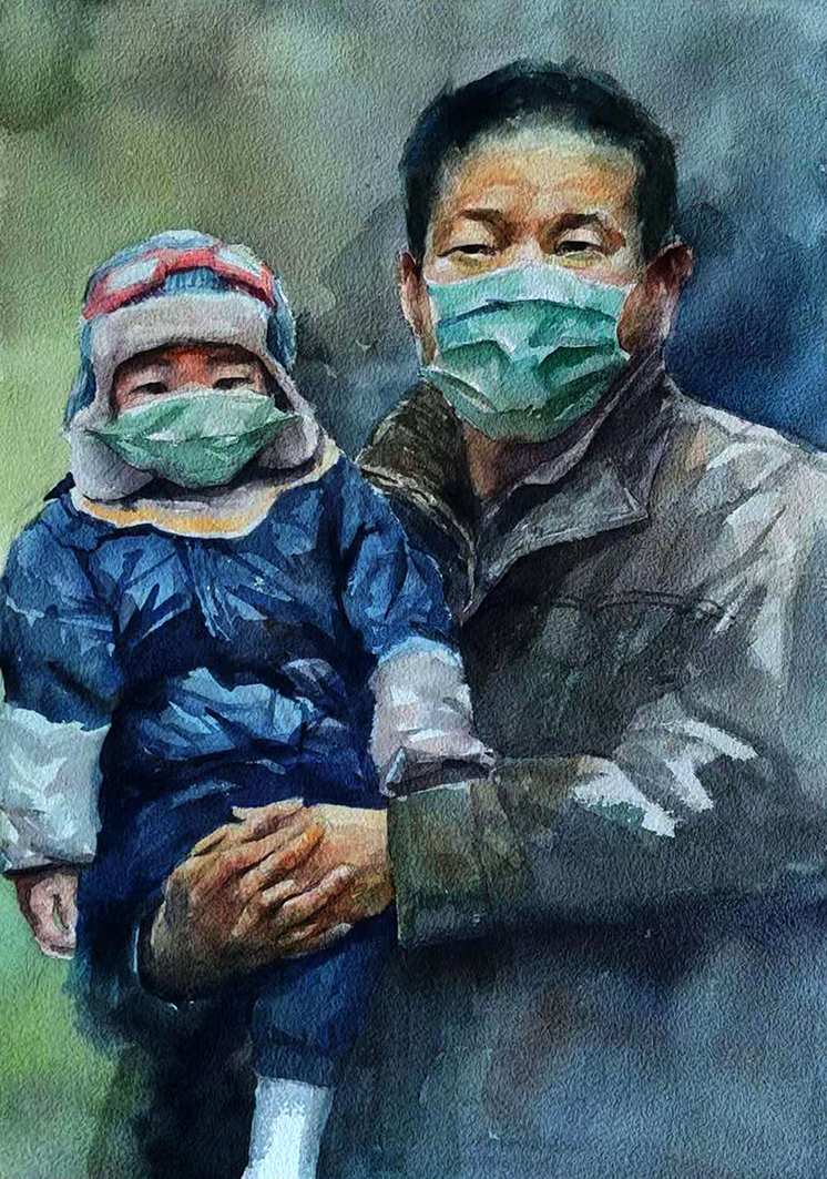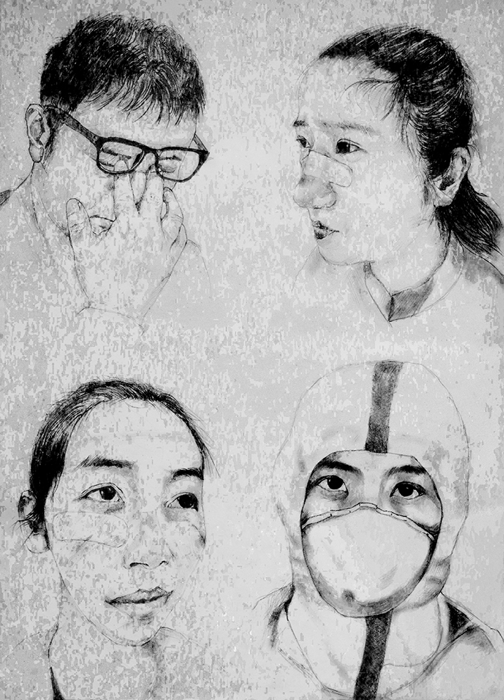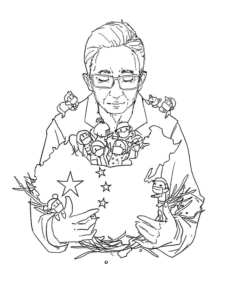 創(chuàng)作簡介:疫情嚴重,我們學生無法支援一線,只有做好預防,小心抑疫!作品主體是鐘老和醫(yī)護人員的形象,他們?yōu)榱俗鎳恢迸^戰(zhàn)在一線崗位,為全國努力,保護中國人民的生命安全。中國加油!武漢加油!
