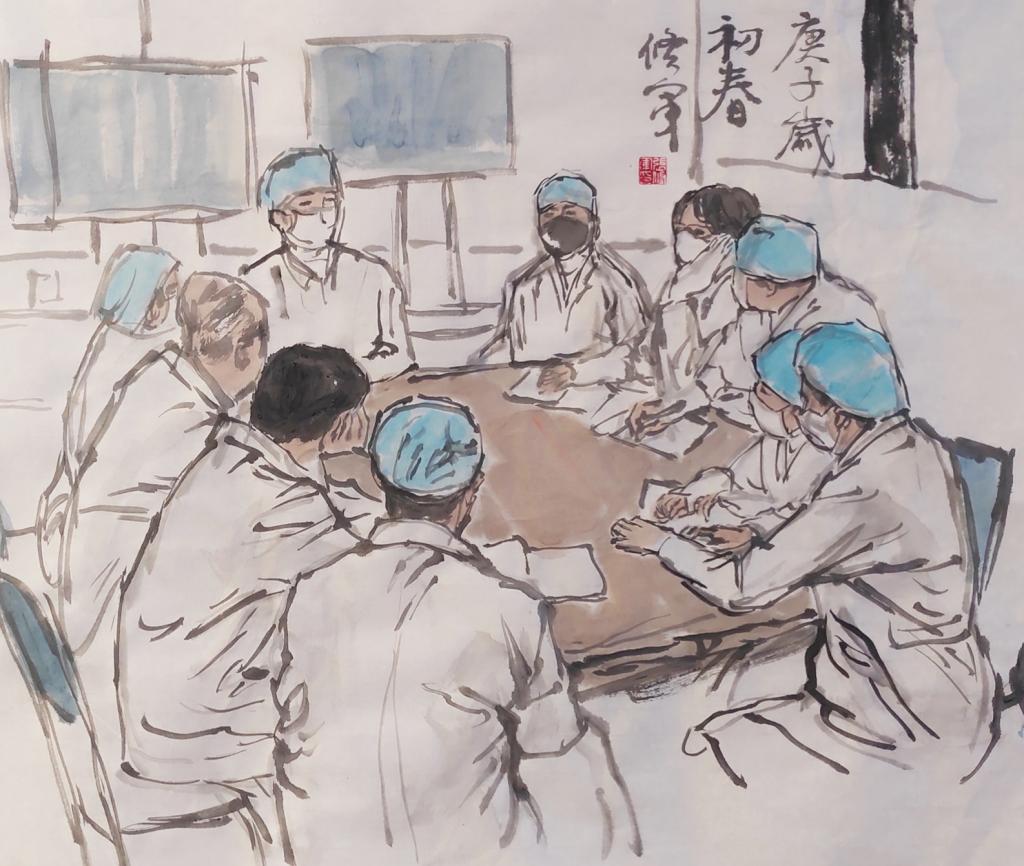 創(chuàng)作簡介:為了更好的治療患者,醫(yī)護工作者們在緊急研究治療方案,他們夜以繼日,黑白奮戰(zhàn)。這些戰(zhàn)疫勇士們有的是外地的醫(yī)護人員,有的20幾天不回家,他們唯一的目標是醫(yī)好病患。點贊無私奉獻的醫(yī)護人員!